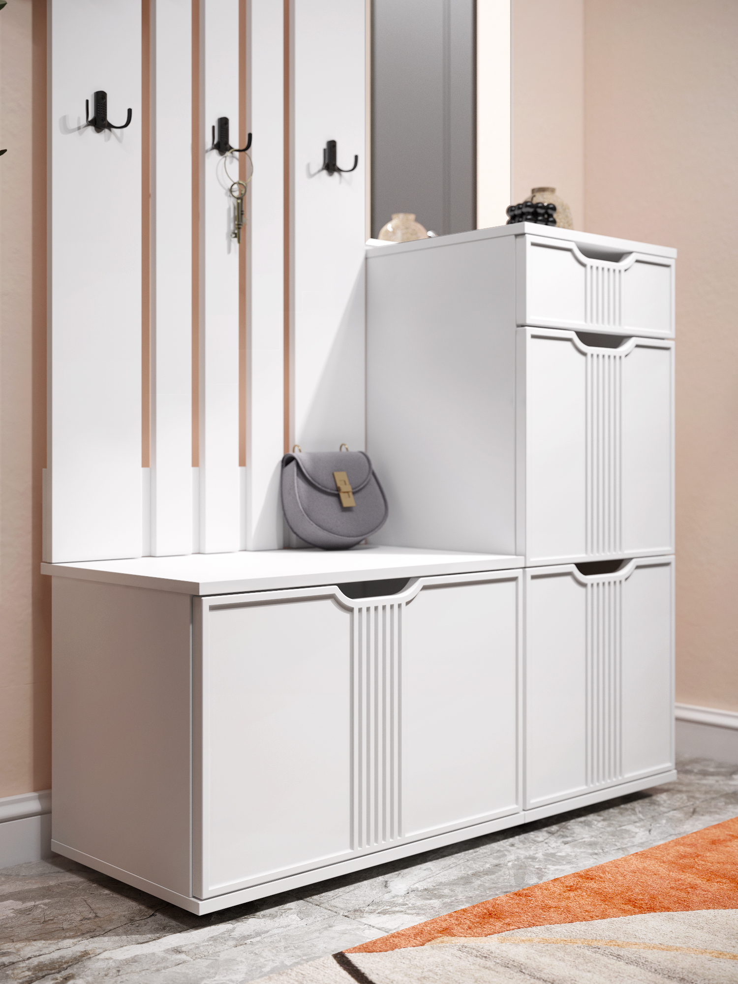 Тумба Эмилия ЭЛ-4 изготовлена из ЛДСП 16 мм, фасады МДФ. Тумба оснащена одним выдвижным ящиком, за дверьми расположены три полки для размещения обуви и других вещей. Сочетая тумбу с другими модулями из коллекции Эмилия, Вы можете создать стильную и лаконичную прихожую у себя дома.