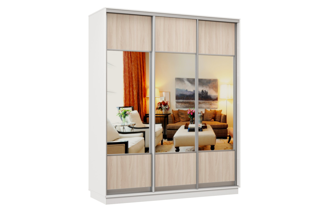 Шкаф-купе Премьер Лайт 23 (05;05;05) трехдверный (Ясень шимо светлый/Белый)