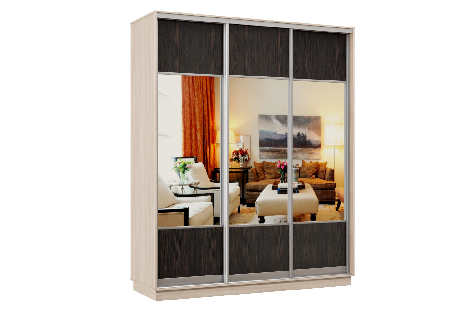 Шкаф-купе Премьер Лайт 33 (05;05;05) трехдверный (Ясень шимо светлый/Венге)