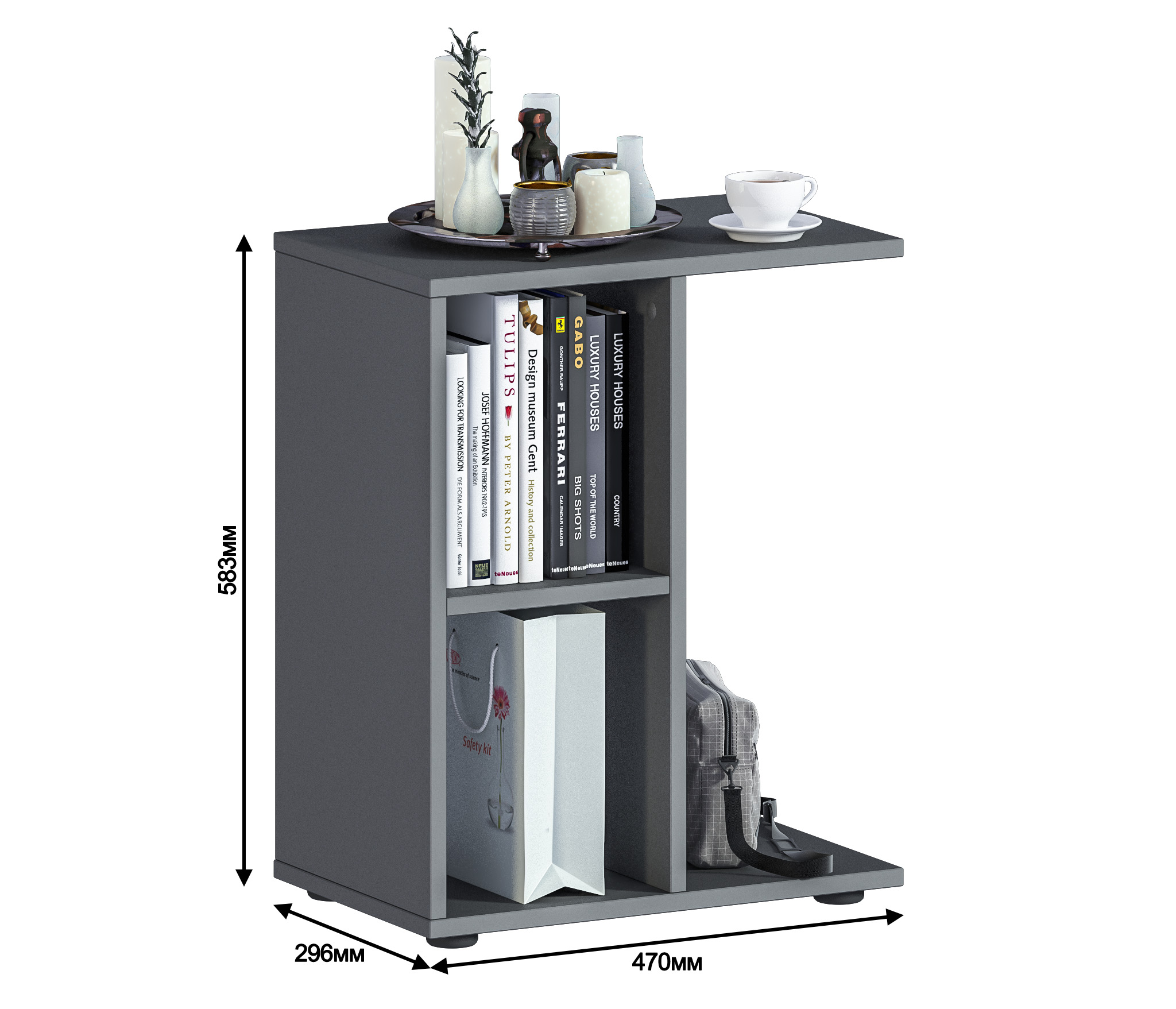 Придиванный журнальный столик Альфа СБ-3331 сочетает в себе несколько показателей - удобство, стиль и функциональность. Столик имеет компактные размеры: ширина 47см, высота 58,3 и глубина 29,6 см и вес всего 7 кг. Это позволяет разместить столик в любом месте в квартире: гостиной, детской, прихожей, на балконе. На двух полках можно разместить книги, журналы, рукоделие, растения. Стол произведен из современного и прочного ЛДСП.