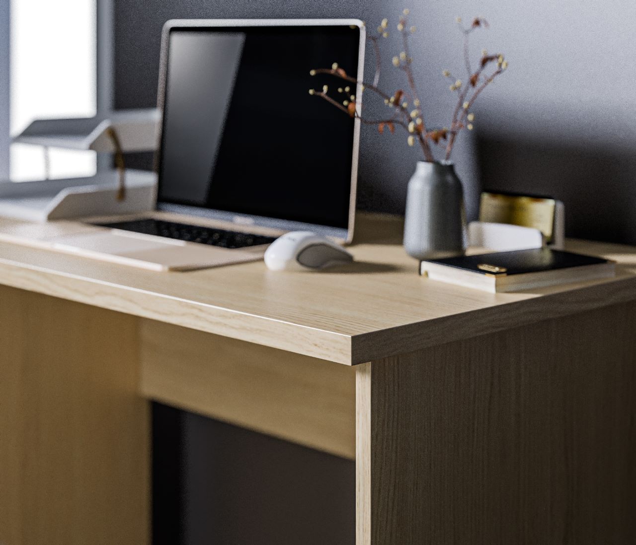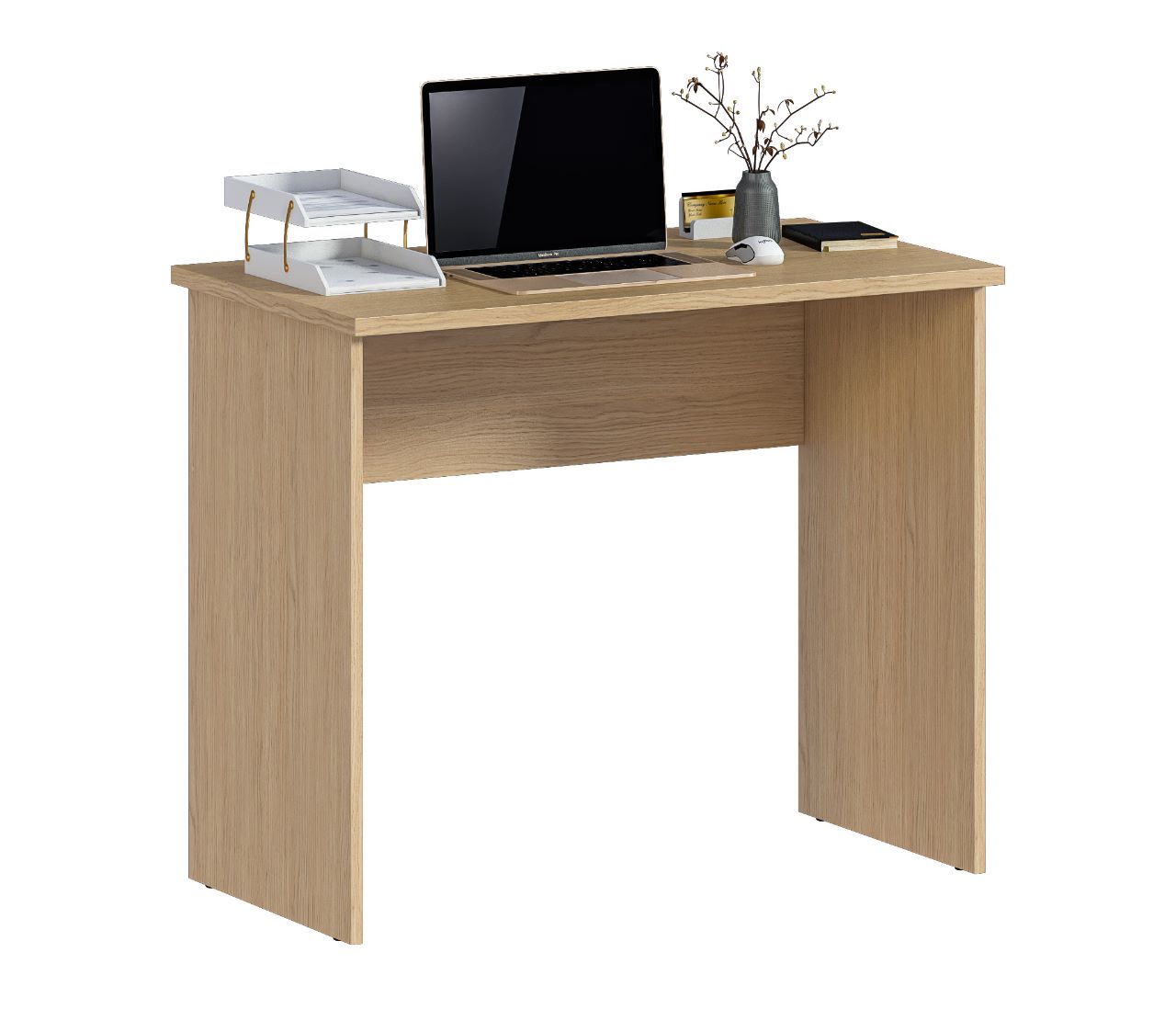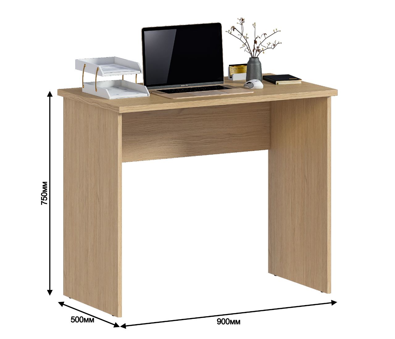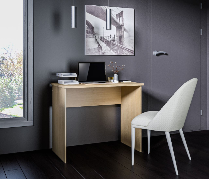 Габаритные размеры – ширина 90 см, высота 75 и глубина 50 см. Стол произведен из современного и экологичного материала ЛДСП. Минималистичный дизайн и цвет стола не создают ощущение громоздкости. Материал отделки легок в уходе.
