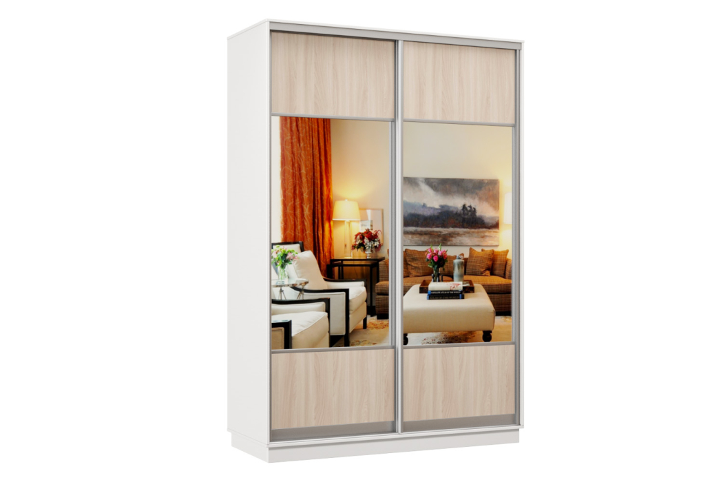 Шкаф-купе Премьер Лайт 01 (05;05) двухдверный (Ясень шимо светлый/Белый)