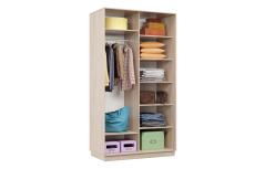Один фасад выполнен из ЛДСП с разъединительным профилем, а другой – зеркало с разъединительным профилем. Используется выдвижная штанга для одежды.