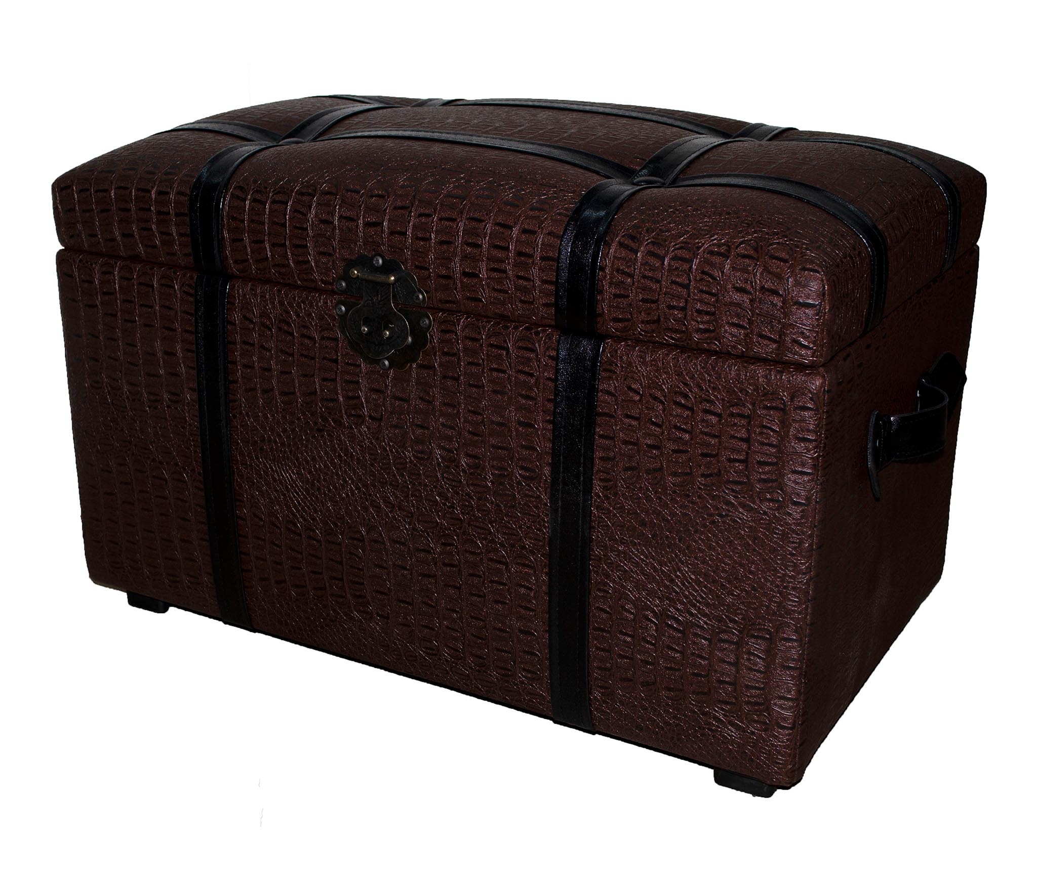 Банкетка "Алигатор" с ящиком для хранения представлена в классическом дизайне под "крокодиловую кожу" коричневого цвета. Мебель из такой кожи будет смотреться гармонично в любом интерьере дома или дачи- от классики до хай-тека. Сундук банкетка имеет пластиковые ножки и декоративный металлический замок. Пуфик подойдет в прихожую, коридор, в спальню, в гостинную, в детскую, в кухню, в зал прекрасно впишется в любой интерьер офиса, дома или дачи. Пуф мягкий идеальный подарок мужчине или женщине на свадьбу, годовщину или юбилей. Подарок любимой, маме, жене, подруге. Сундук очень удобен в использовании в качестве пуфа или банкетки. Его крышка изготовлена из прочного материала, способного выдерживать большую вертикальную нагрузку до 150 кг. Объемное внутреннее пространство банкетки, отделанное бежевым спанбондом, позволяет хранить различные предметы домашнего обихода и вещи. Элегантный пуфик банкетка будет служить местом для сидения и дополнительным местом для хранения. Пуфики удобны в качестве тумбы, прикроватного туалетного столика, полки, обувницы, стула, коробки для хранения. В ящик банкетки можно сложить обувь, книги, игрушки , постельное белье. Пуф с крышкой , банкетки разных цветов , размеров и фактур : большие, высокие, круглые, велюр, из рогожки, на ножках и без, из экокожи, ткани, с каретной стяжкой представлены в нашем магазине. Банкетку удобно использовать для сидения и в качестве подставки для ног или лежака для животных. Прочный каркас, качественные материалы, эксклюзивный дизайн, стильная обивка не оставят равнодушными взрослых и детей. Наполнитель для пуфа упругий поролон. Такой пуфик-банкетка альтернатива круглому пуфу, бескаркасному пуфу, отличная замена пуфа мешка.