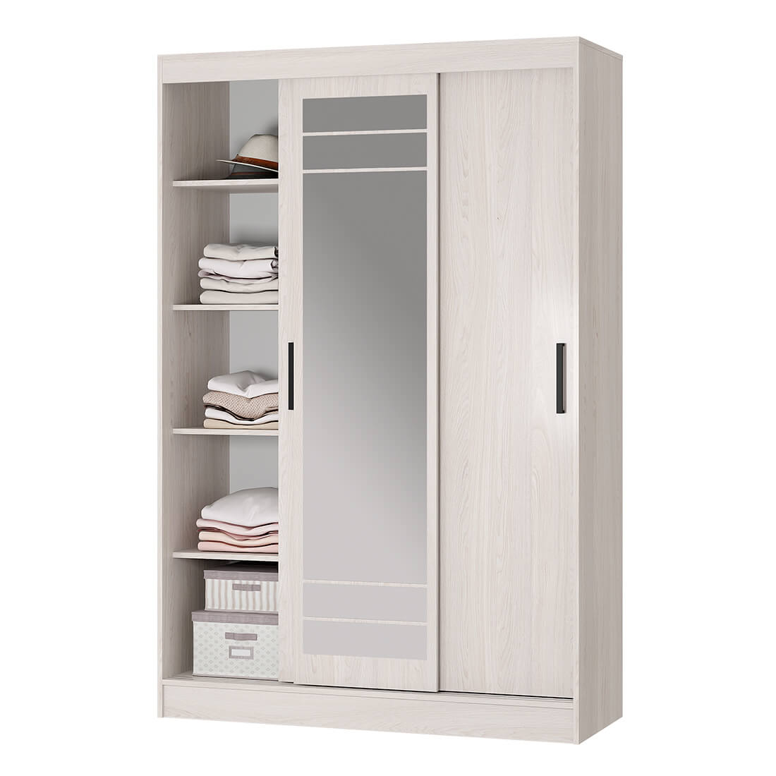 Двери оснащены удобными ручками, центральная створка – зеркалом с еврокромкой, что визуально расширяет окружающее пространство.