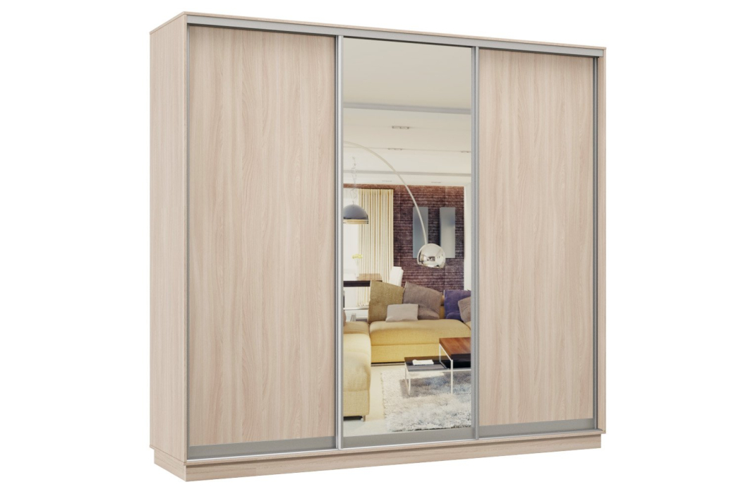 Шкаф-купе Премьер Лайт 56 (02;01;02) трехдверный (Ясень шимо светлый)