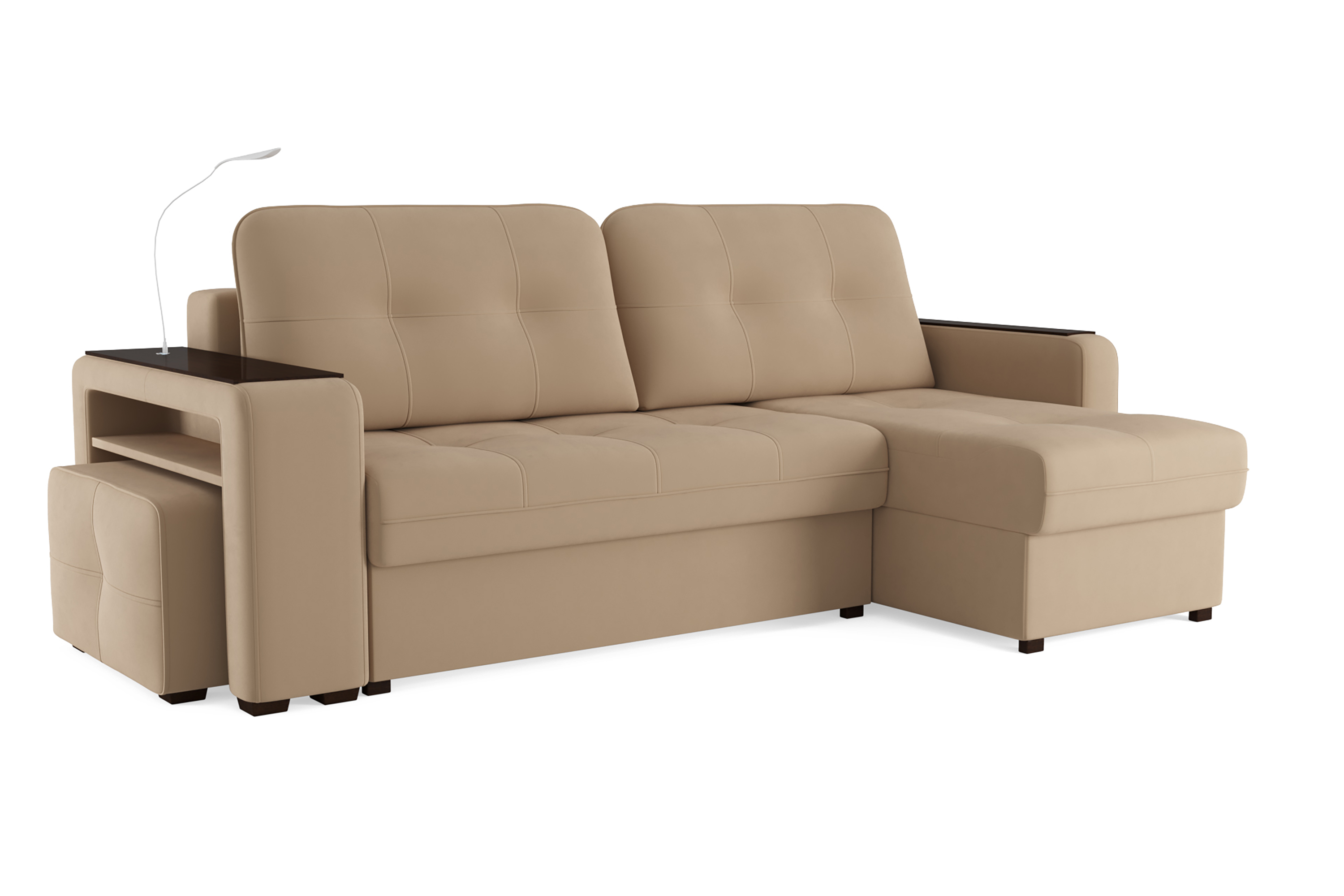 Отзывы о Столплит Диван-кровать угловой Smart 4 пуф слева Велюр Бежевый