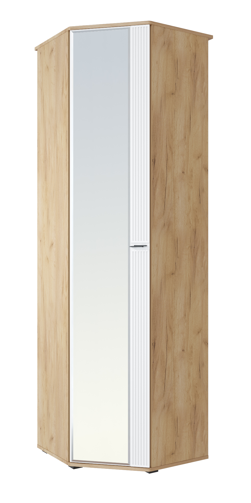 Шкаф угловой с зеркалом Эмилия ЭЛ-14К поможет создать благоприятную атмосферу. За распашной дверью находится штанга для вешалок-плечиков с верхней одеждой. Антресольная и нижняя полки пригодятся для хранения сложенной одежды, сумок, головных уборов и других аксессуаров. Модуль может быть собран в зеркальном варианте «правым» или «левым». Свес крышки в 30 мм обеспечит прилегание к стене с любым плинтусом. Фурнитура: петли с доводчиками, ручка металл. Важная информация. Мебель доставляется в разобранном виде, в упаковках.