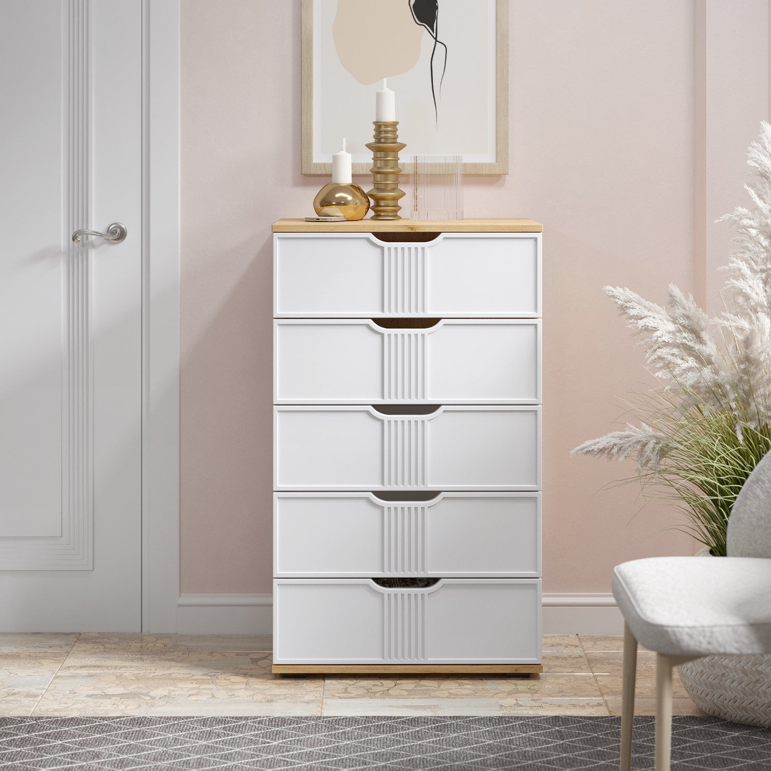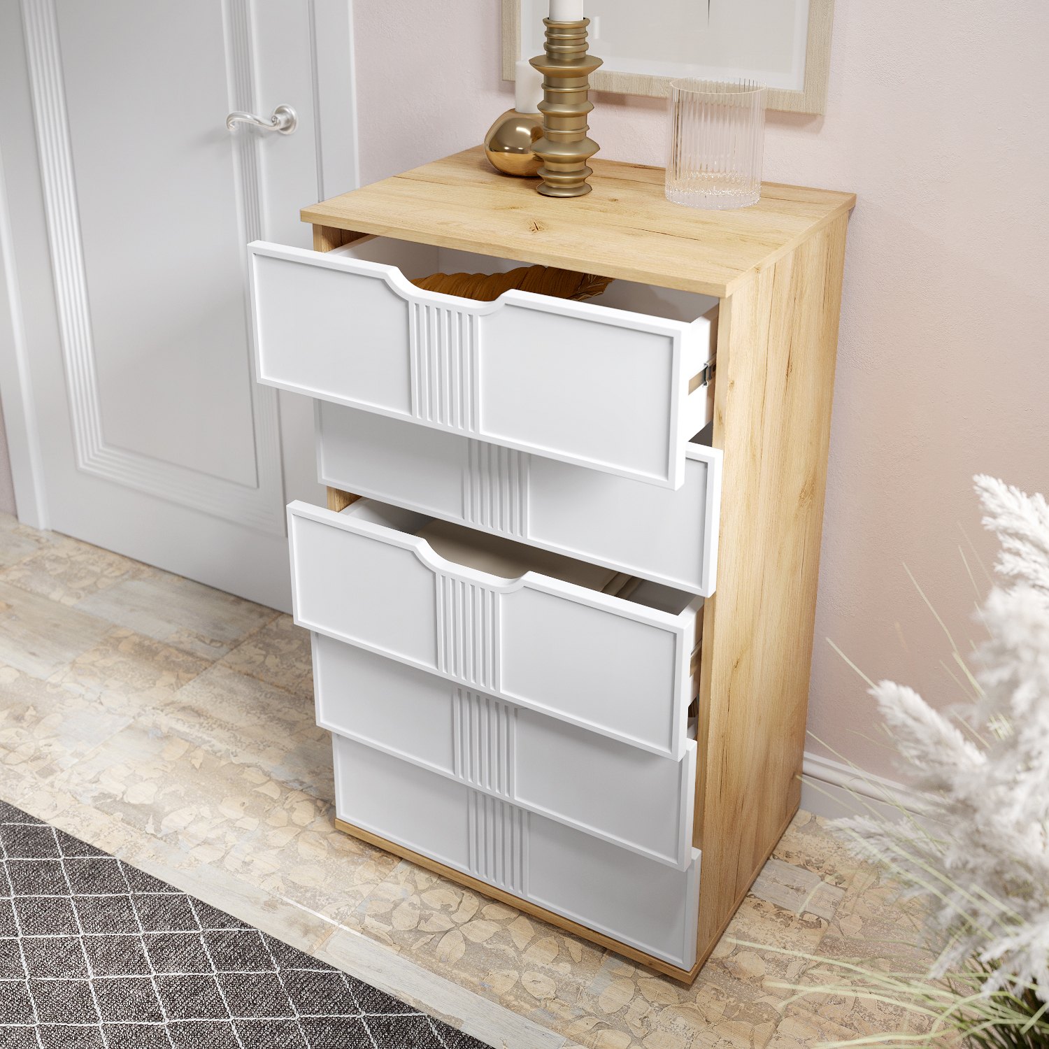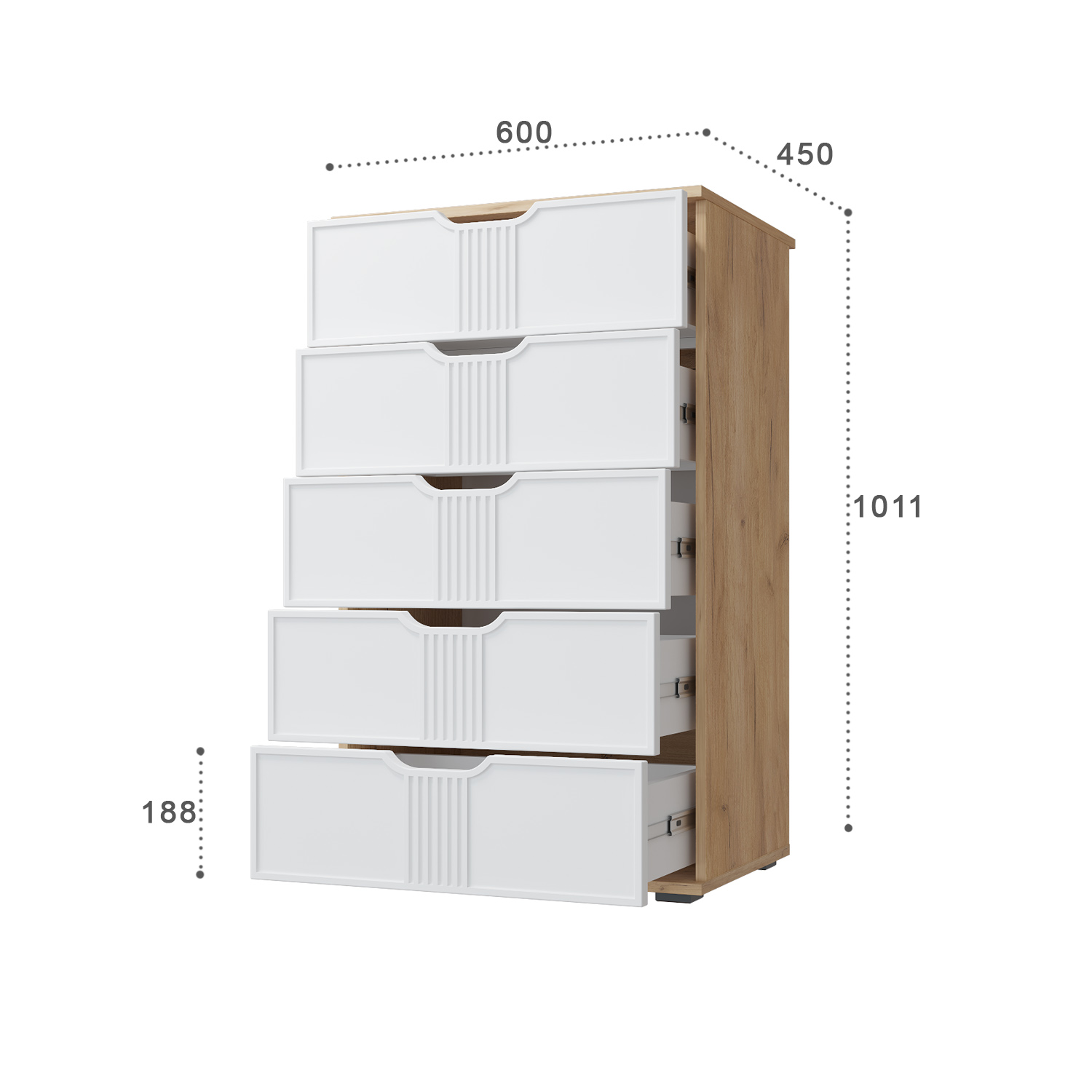 Комод Эмилия ЭЛ-18 изготовлен из ЛДСП 16 мм, фасады МДФ. Свес крышки в 30 мм обеспечит прилегание к стене с любым плинтусом. Фурнитура: телескопические направляющие полного выдвижения без доводчиков. Важная информация. Мебель доставляется в разобранном виде, в упаковках.