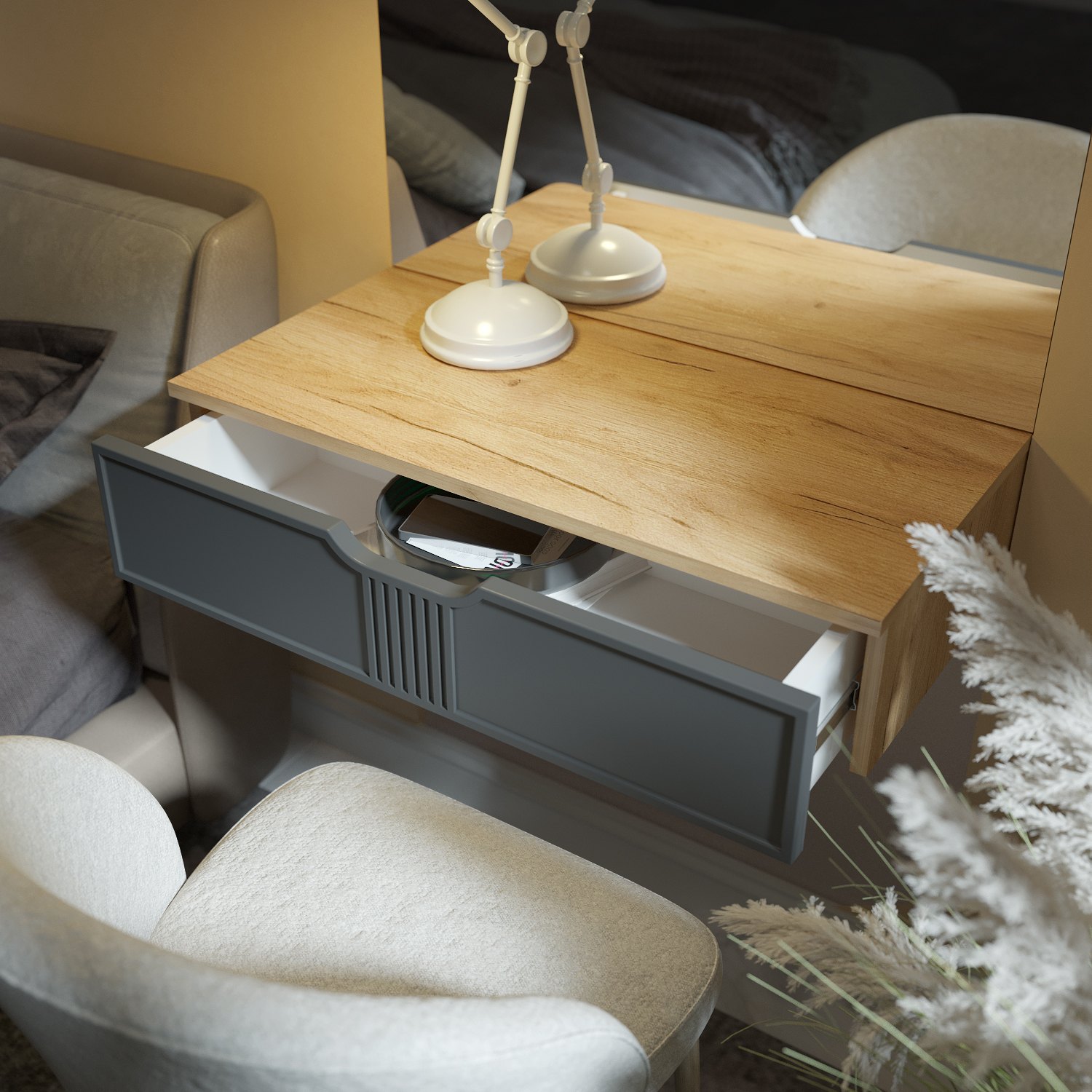 Тумба подвесная/консольный столик Эмилия ЭЛ-22 с выдвижным ящиком идеально впишется в любой интерьер. Изящный дизайн, функциональность и компактность, а так же его крепление на стену позволяют создать интересное дизайнерское решение и интерьер не будет выглядеть громоздко. Отсутствие лишних деталей делает консоль легкой и практичной не загромождает пространство визуально. Несмотря на компактный размер столешница позволяет разместить ноутбук, зеркало, косметичку, настольную лампу или все для учебы и творчества. Установить можно практически в любом помещении: в детской комнате, в гостиной, в прихожей, на балкон или лоджию как полка для зеркала, для ключей, для создания индивидуального интерьерного решения. Дополнив тумбу зеркалом ЭЛ-24 вы создадите прекрасный комлект. Фурнитура: телескопические направляющие полного выдвижения без доводчиков. Важная информация. Мебель доставляется в разобранном виде, в упаковках.