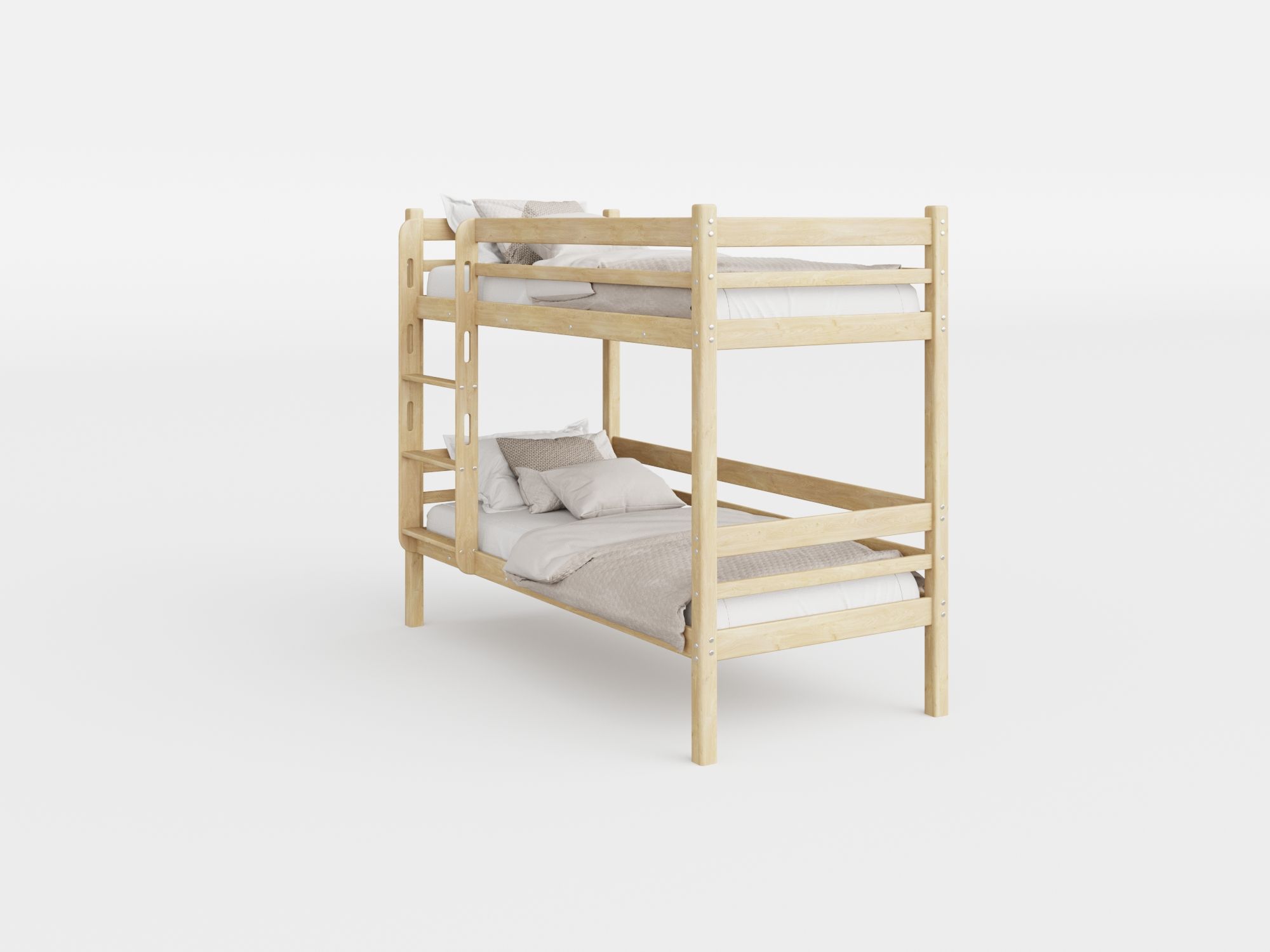 Удобная широкая лесенка, с фрезерованными ручками позволяет комфортно забираться на второй ярус.