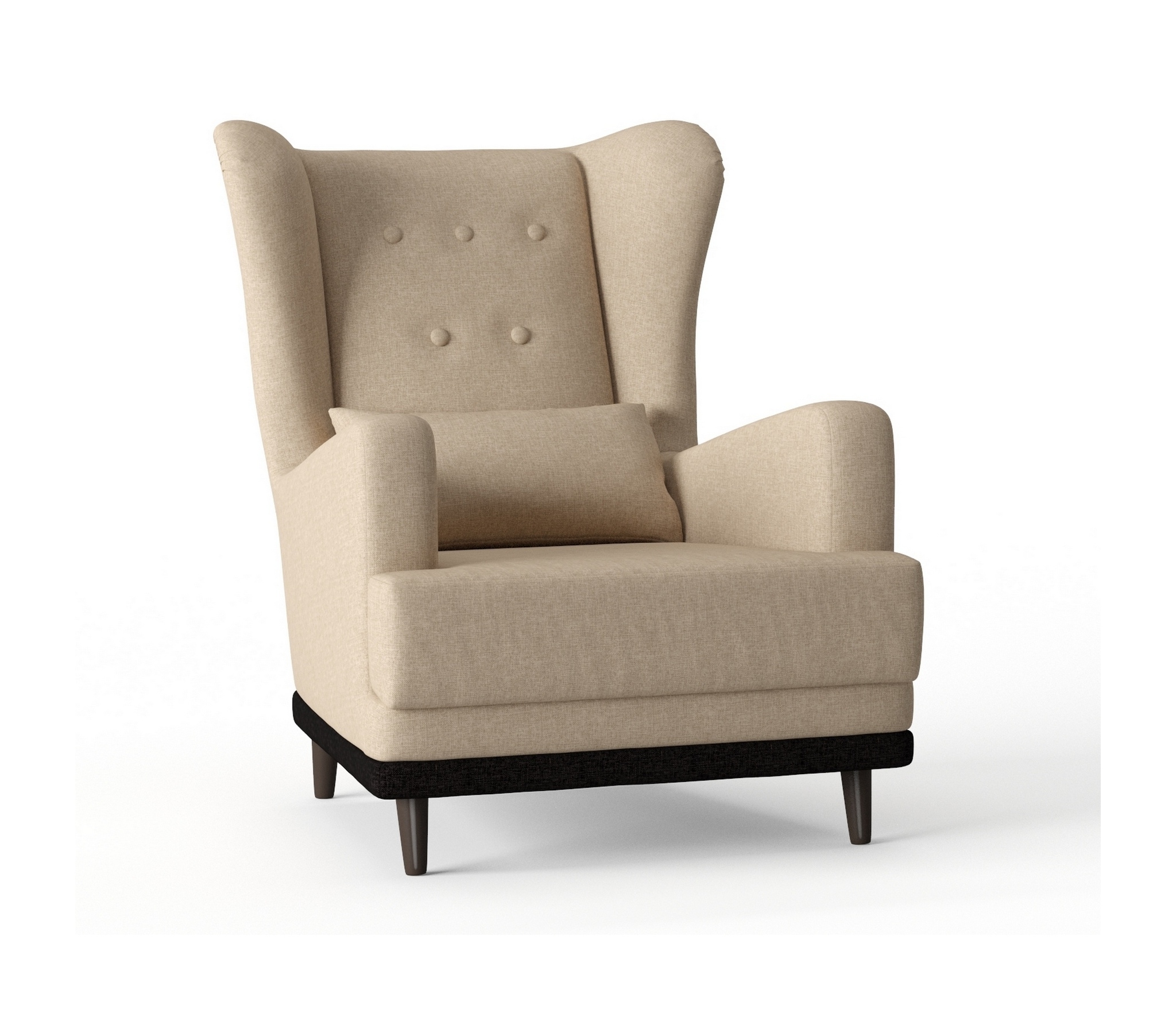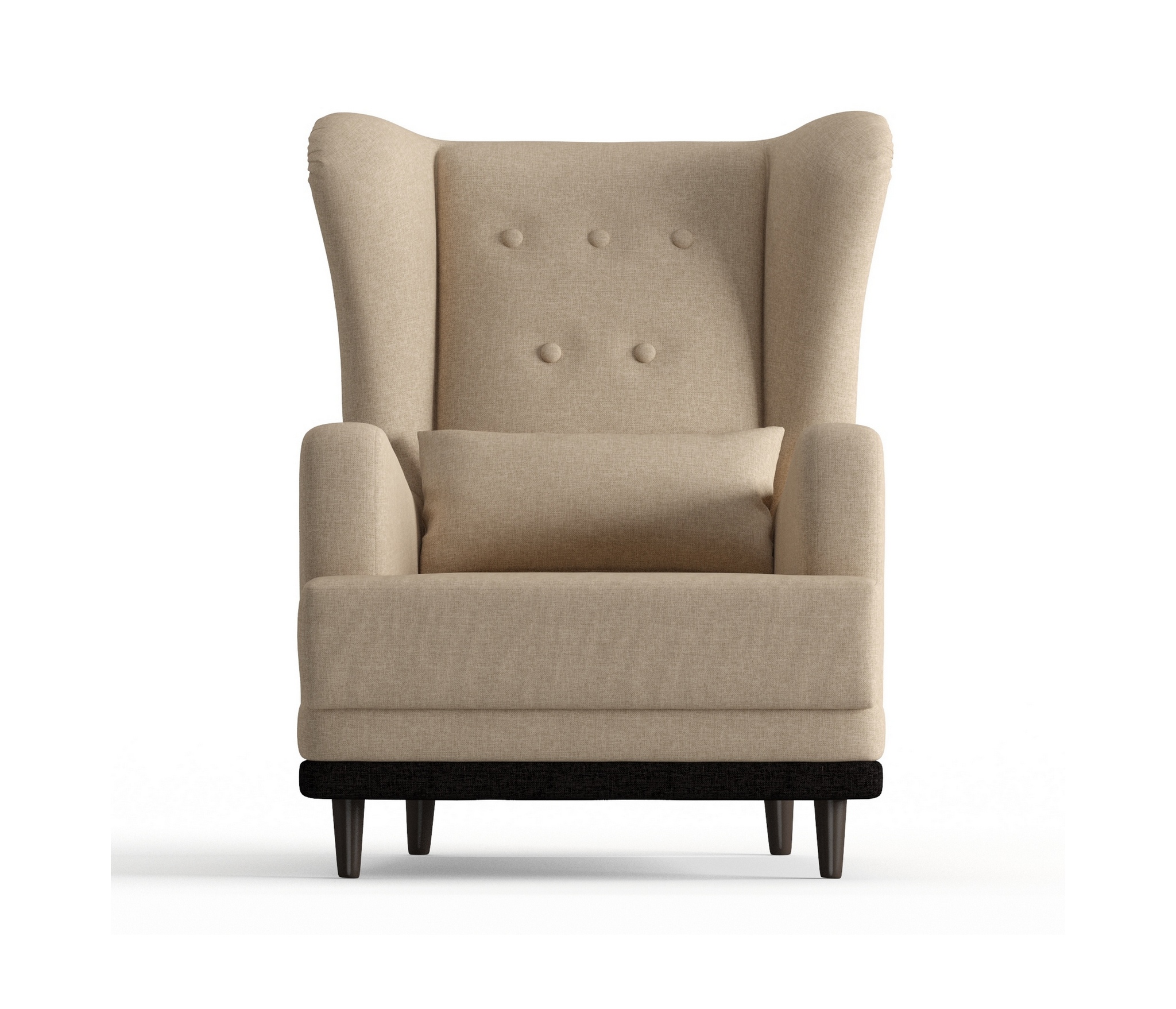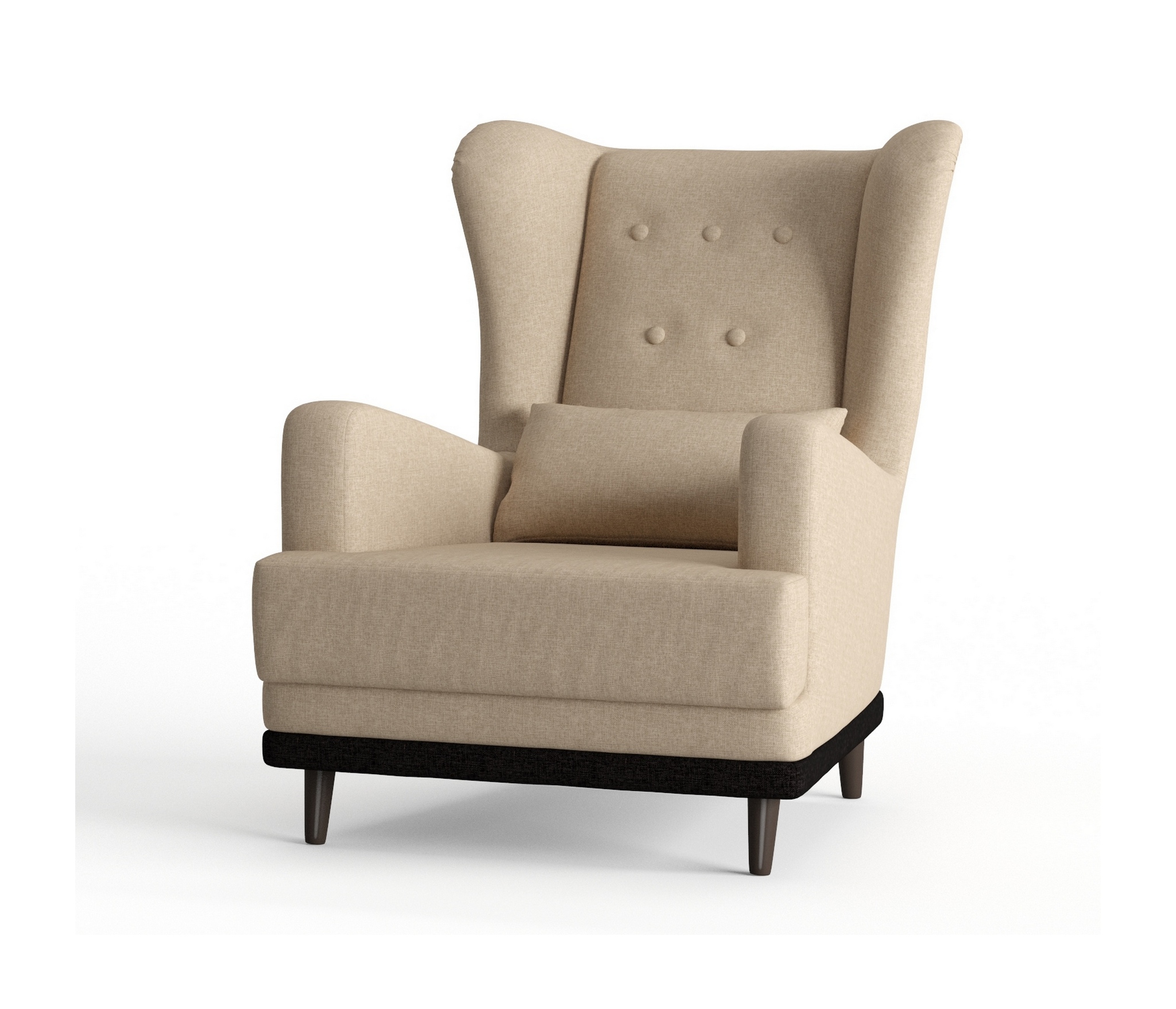 Практичное кресло Барон обладает особенной конструкцией. Его главное отличие ""уши""- расположенные по бокам спинки кресла , глубокое сиденье 60 см для удобства, высокая спинка, устойчивые деревянные ножки и прочный каркас. Красиво сдекорированная пуговками спинка кресла Барон задаёт эстетику и элегантность. На кресло легко сесть, и с комфортом проводить время. Наполнитель кресла ППУ (пенополиуретан) добавляет мягкости и комфорта. Пенополиуретан практичен и способен прослужить в течение многих лет, кроме того, такой материал безопасен и экологичен. ППУ пропускает воздух, поэтому гигиеничен.