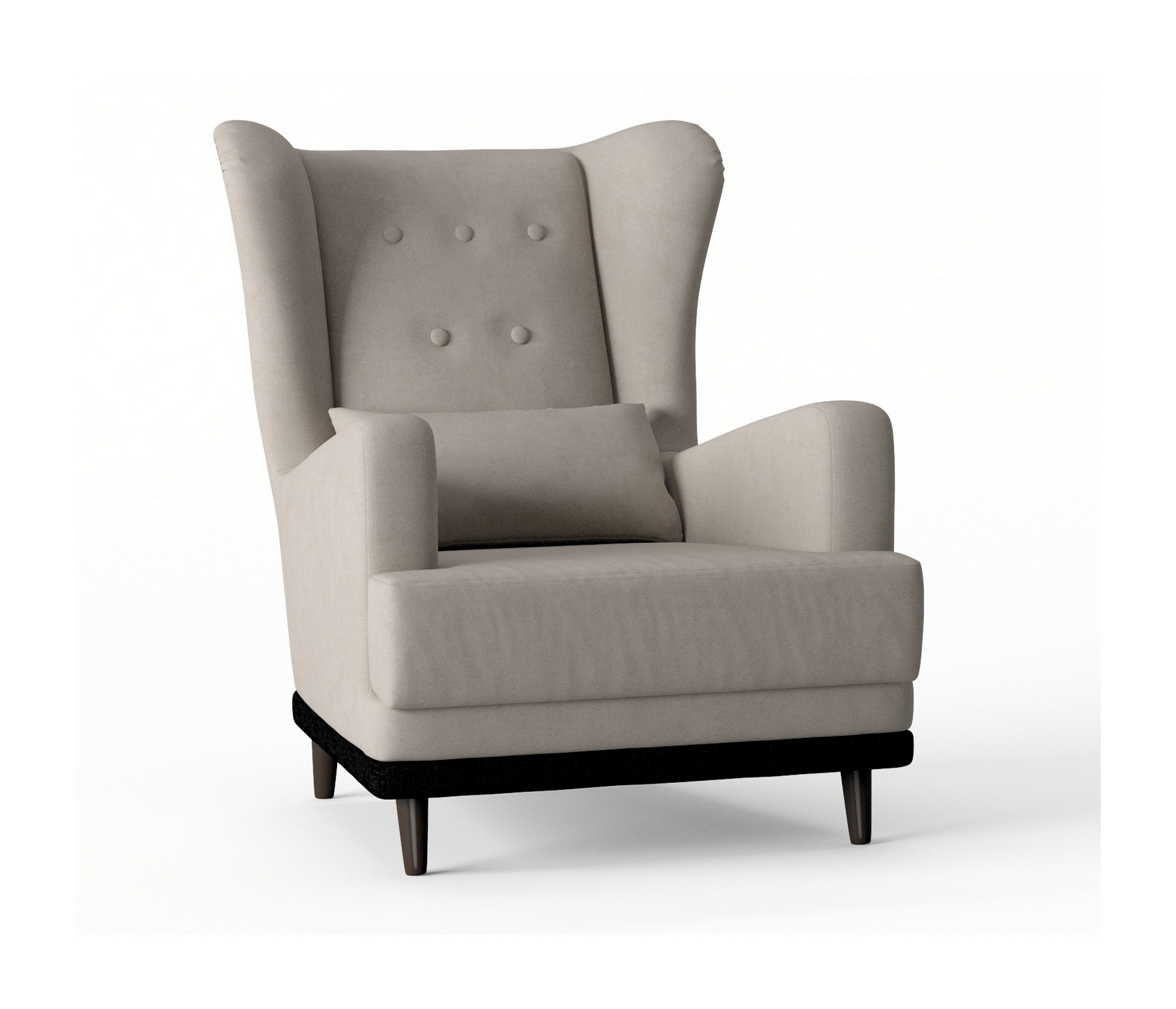 Практичное кресло Барон обладает особенной конструкцией. Его главное отличие ""уши""- расположенные по бокам спинки кресла , глубокое сиденье 60 см для удобства, высокая спинка, устойчивые деревянные ножки и прочный каркас. Красиво сдекорированная пуговками спинка кресла Барон задаёт эстетику и элегантность. На кресло легко сесть, и с комфортом проводить время. Наполнитель кресла ППУ (пенополиуретан) добавляет мягкости и комфорта. Пенополиуретан практичен и способен прослужить в течение многих лет, кроме того, такой материал безопасен и экологичен. ППУ пропускает воздух, поэтому гигиеничен.