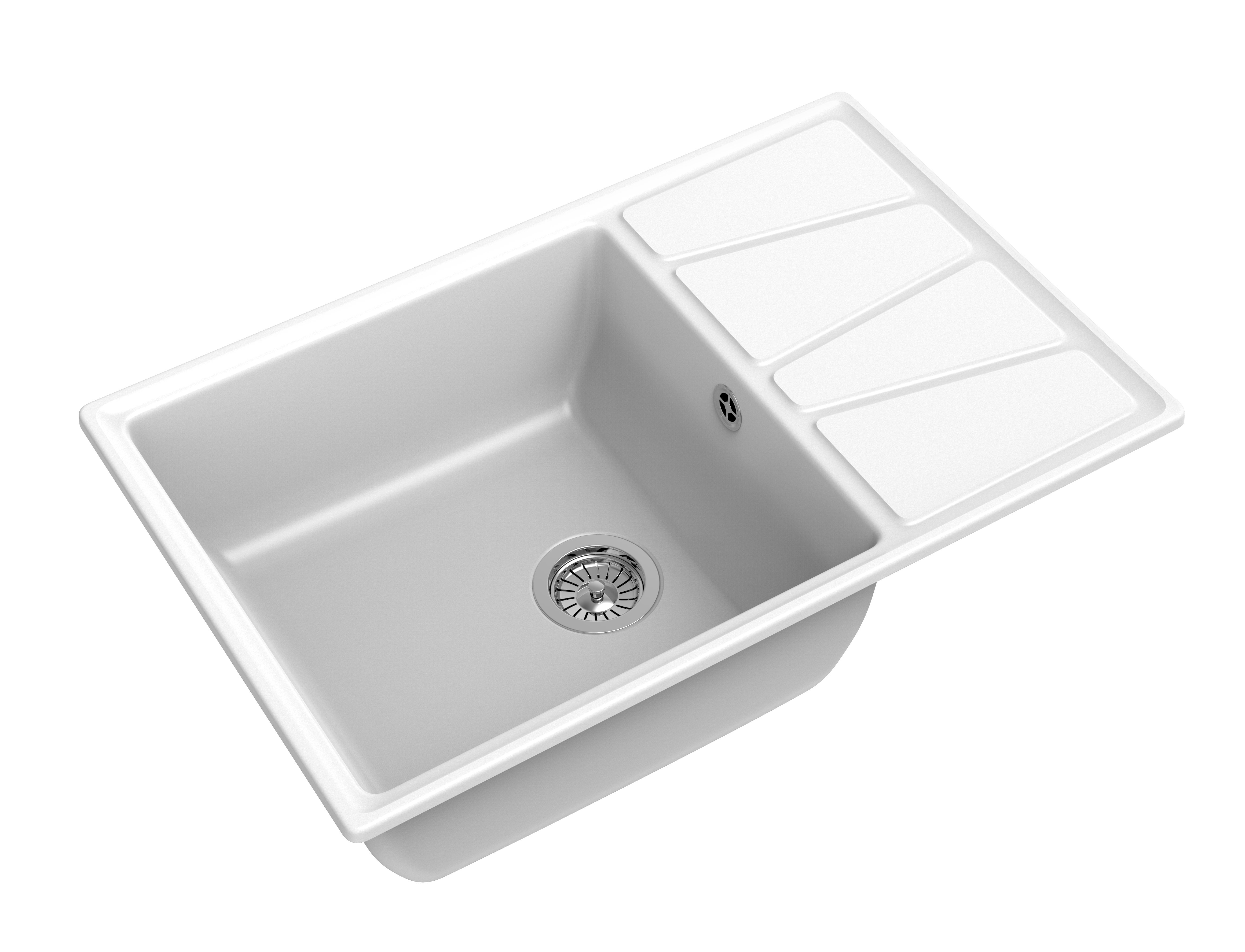 Благодаря продуманной эргономике и оригинальному дизайнерскому решению крыла ее можно установить в тумбу шириной 600 мм. Мойка реверсивная (оборачиваемая). Это значит, что основная чаша может располагаться справа либо слева в зависимости от особенностей планировки вашей кухни и потребности в рабочей поверхности. Дизайнерская модель GranFest выполнена из композитного материала, в основе которого лежит мраморная крошка и базальтовое волокно, что обуславливает повышенную прочность и долговечность. Благодаря защитному слою гелькоута, мойка не покрывается налетом и не распространяет неприятных запахов.
