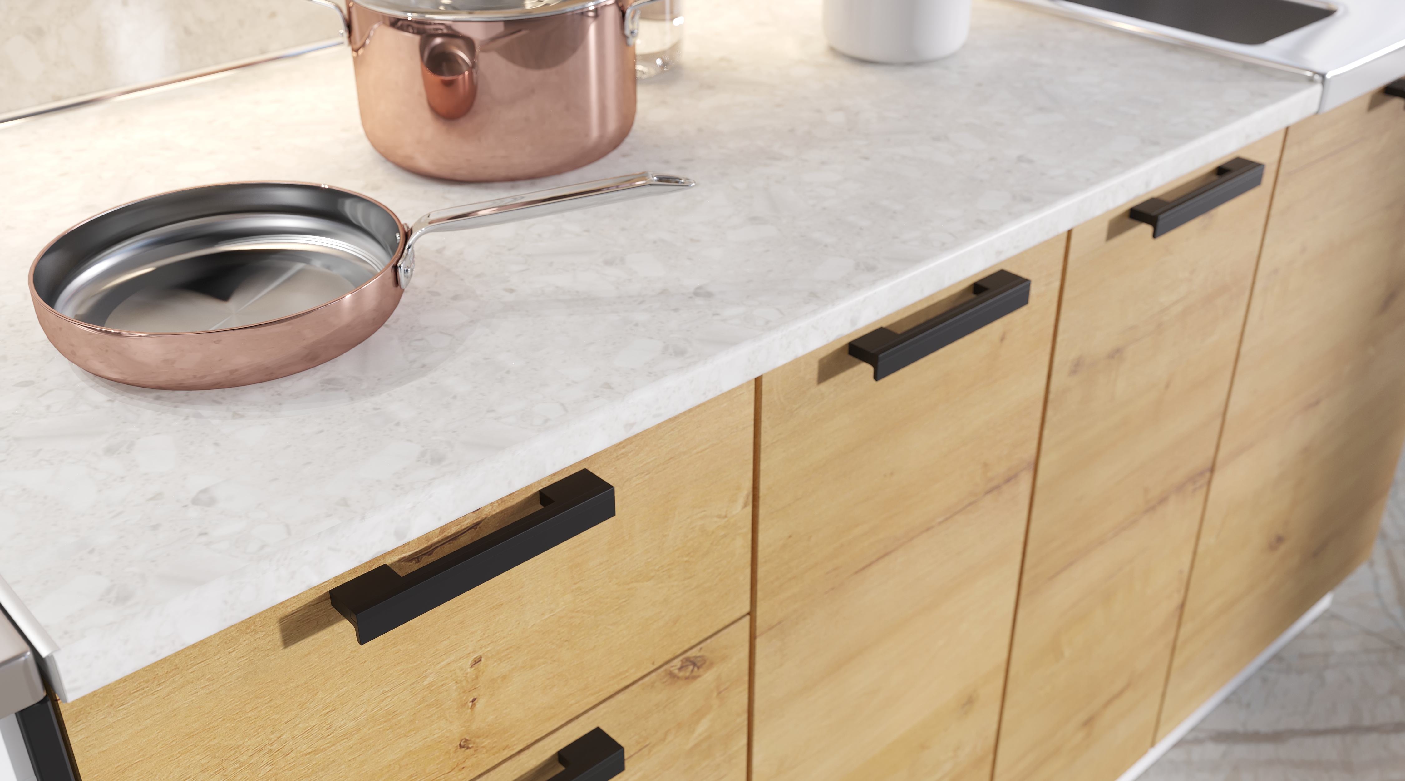 Глубина нижних шкафов: без дверок — 400 мм, с дверцами — 420 мм.