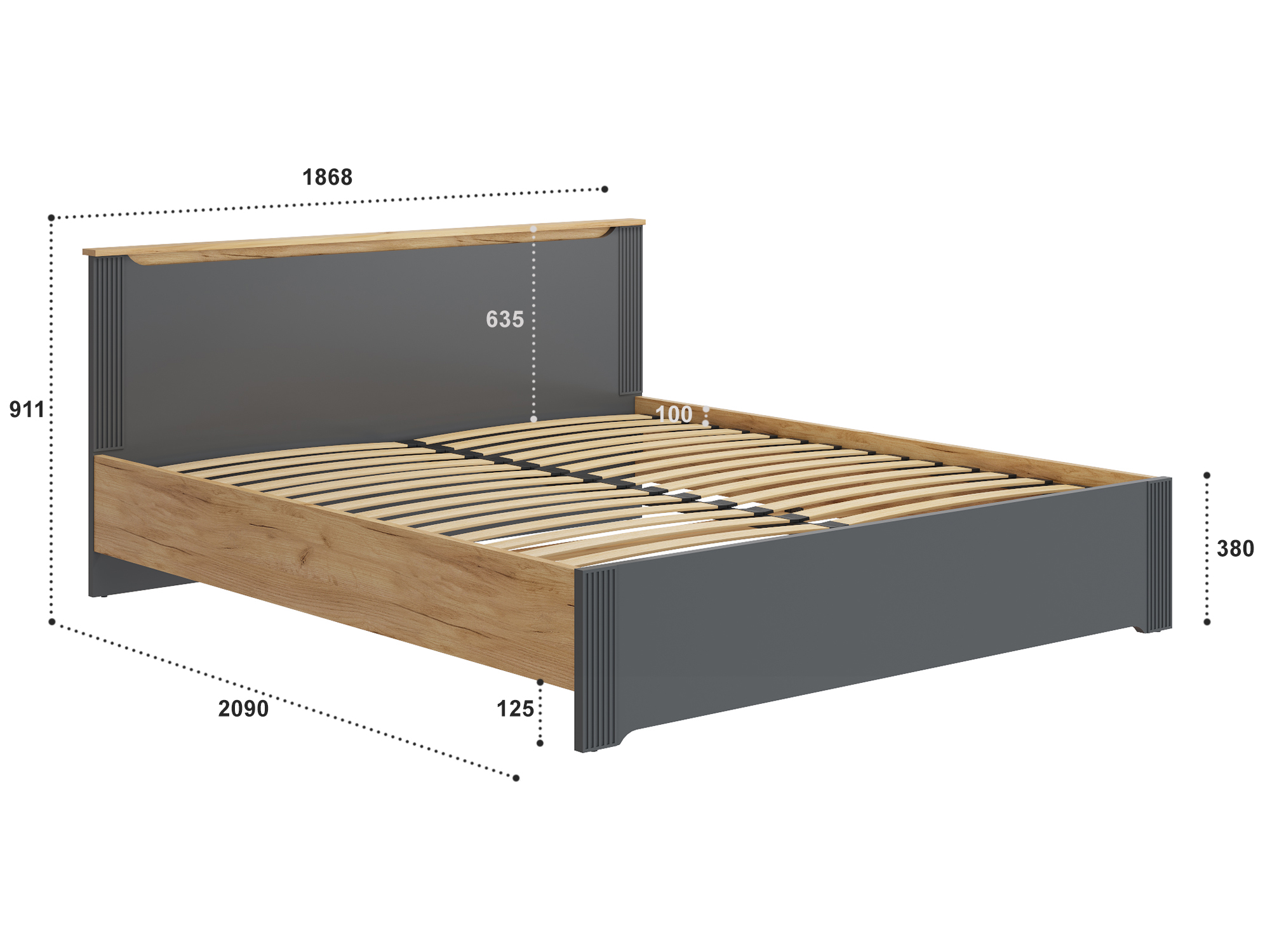 Размеры кровати (ШхВхГ) 189х91х211 см