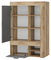 Новая модульная коллекция Прима в актуальном декоре дуб каньон/графит удачно впишется в современную обстановку Вашей квартиры и позволит организовать грамотное хранение вещей в гостиной и спальне. Приятный древесный оттенок корпуса гармонично дополнен матовым графитом, в котором исполнены фасады. Комплект для гостиной состоит из ТВ-тумбы, двух открытых навесных полок, шкафа-витрины со стеклом и шкафа для одежды и белья.