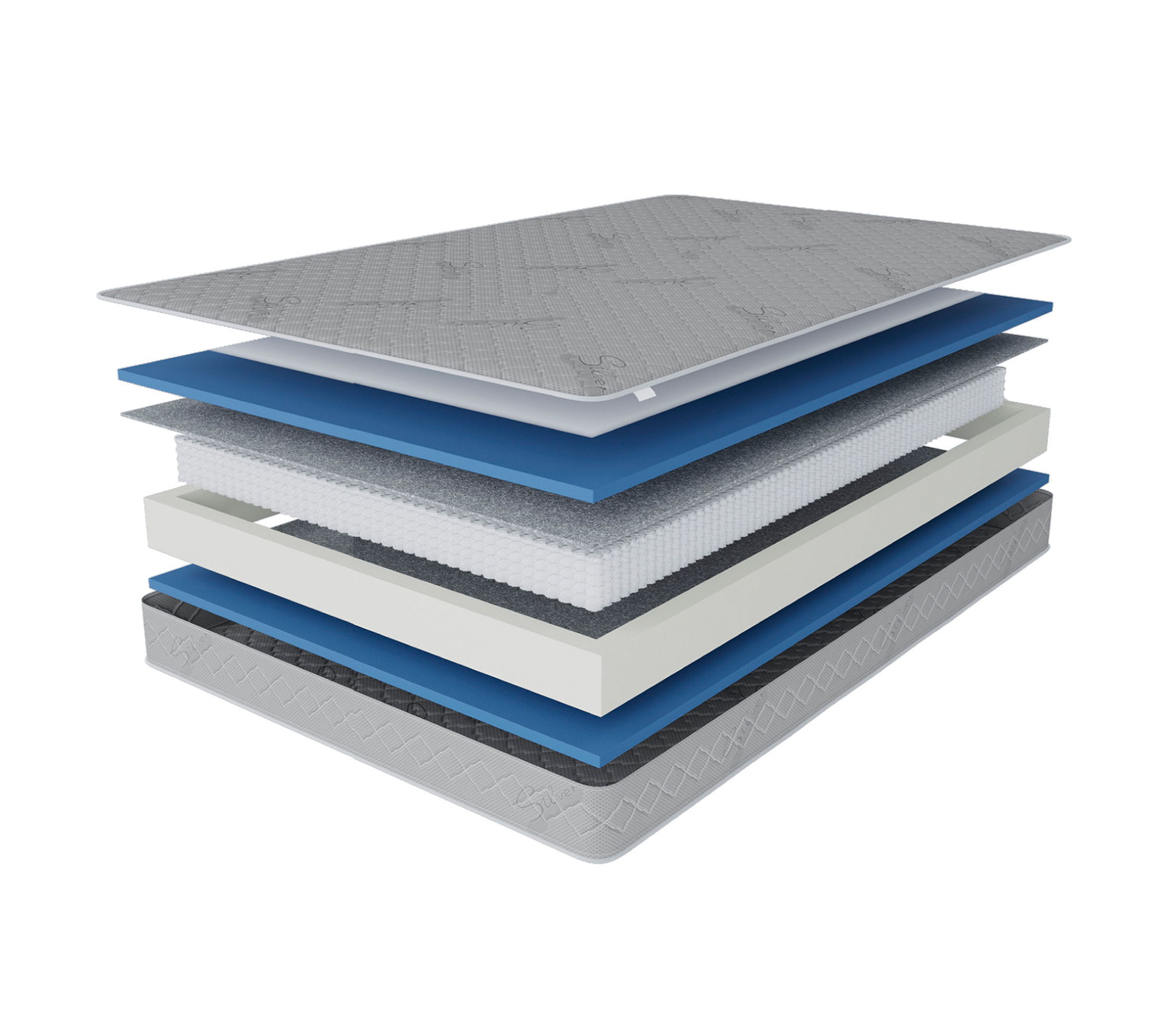 - термовойлоку, который покрывает пружинный блок с обеих сторон. Экологически чистый и прочный, воздухопроницаемый материал защищает комфортные слои от истирания пружинным блоком и распределяет нагрузку;