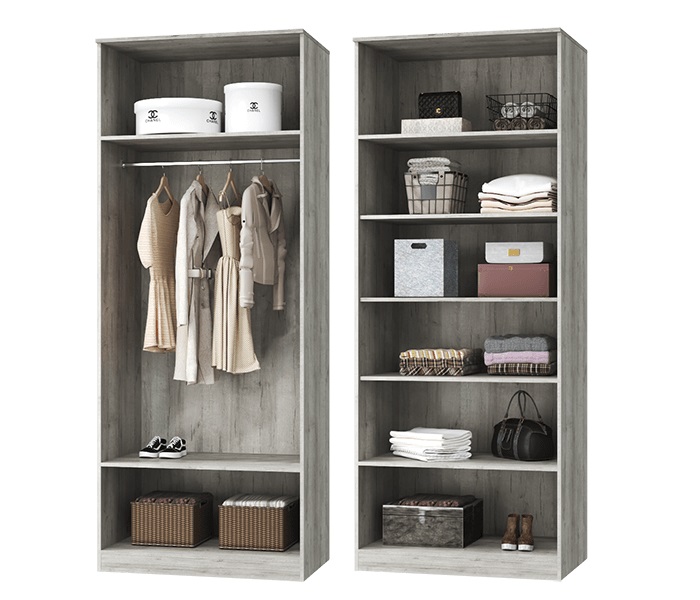 • корпус: ЛДСП (16 мм) «дуб серый», кром. материал (19*0,4 мм) «ясень анкор серый», ЛХДФ (3 мм) «дуб крафт серый»