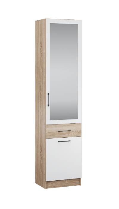Комбинированный шкаф-пенал Денвер - универсальное решение для организации хранения в малогабаритной прихожей. Имеет набор полок за дверцей с зеркалом, ящик, и закрытую вместительную нишу внизу.