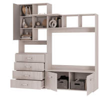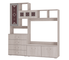 Центральная секция Белла состоит из комода с 4-мя выдвижными ящиками, тумбы под телевизор (размер ниши 118.4х102.4х47 см), а также множества закрытых и открытых полок для хранения книг, домашней утвари и различных мелочей. Приятный декор "ясень белый" имеет рисунок, имитирующий структуру натурального дерева, и гармонично дополнен витражными стеклянными вставками и стильной фурнитурой. Белла отличается компактностью и легкостью без потери функциональности. Стенка будет прекрасно смотреться как в малогабаритке, квартире-студии, так и в просторной гостиной.