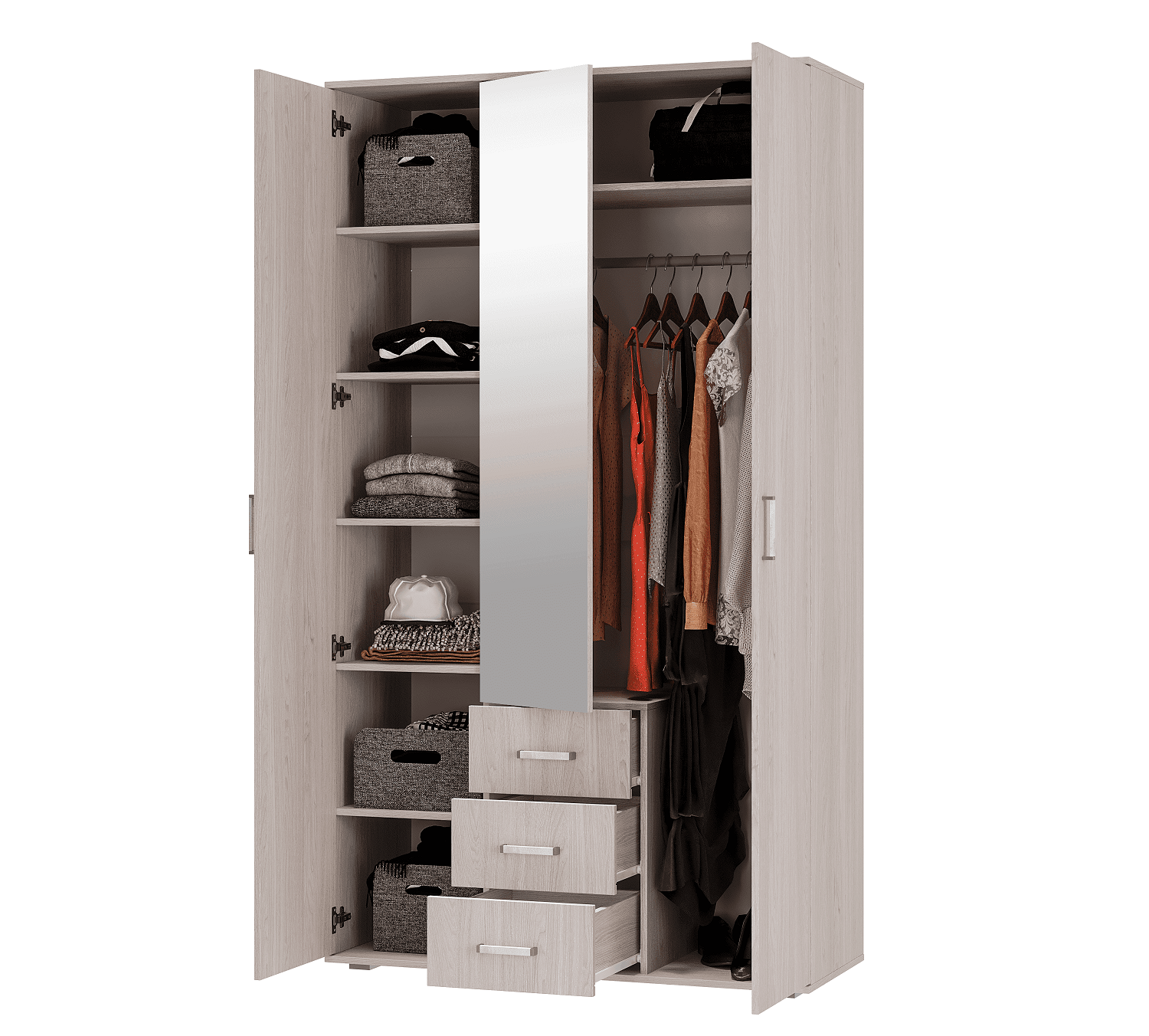 Мебель для спальни Белла – это коллекция, которая отличается простыми геометрическими формами и уникальной древесной фактурой. Благородный декор наполнит комнату свежестью и легкостью и визуально облегчит интерьер. Это особенно важно в малогабаритных квартирах, пространство которых не хочется загромождать.Комплект 1 состоит из удобной двуспальной кровати, двух прикроватных тумб, комода с ящиками и шкафа для одежды и белья.