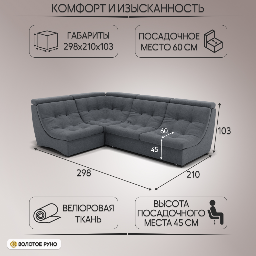 Отзывы о Столплит Угловой Диван Монако-3 ППУ, велюр Серо-голубой