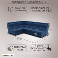 Отзывы о Столплит Угловой Диван Монако-3 ППУ, велюр Синий