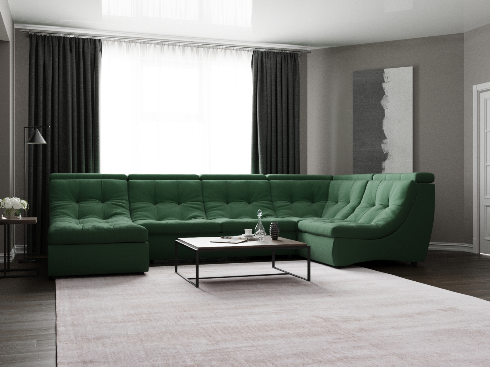 Отзывы о Столплит П-образный диван Монако-4 ППУ, велюр Зеленый