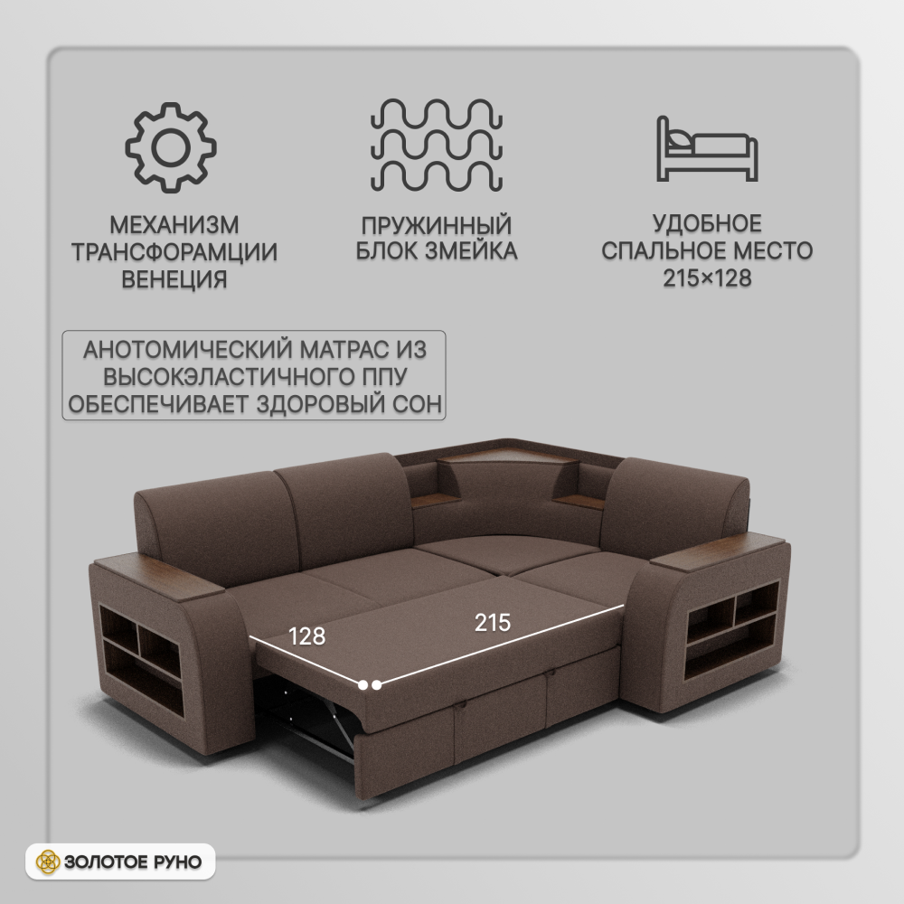 Отзывы о Столплит Угловой диван Фараон ППУ, велюр Коричневый