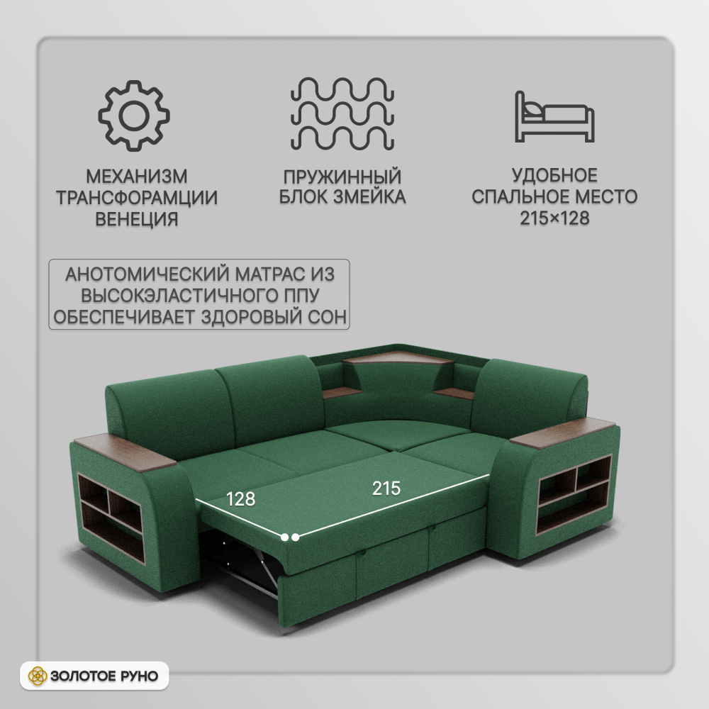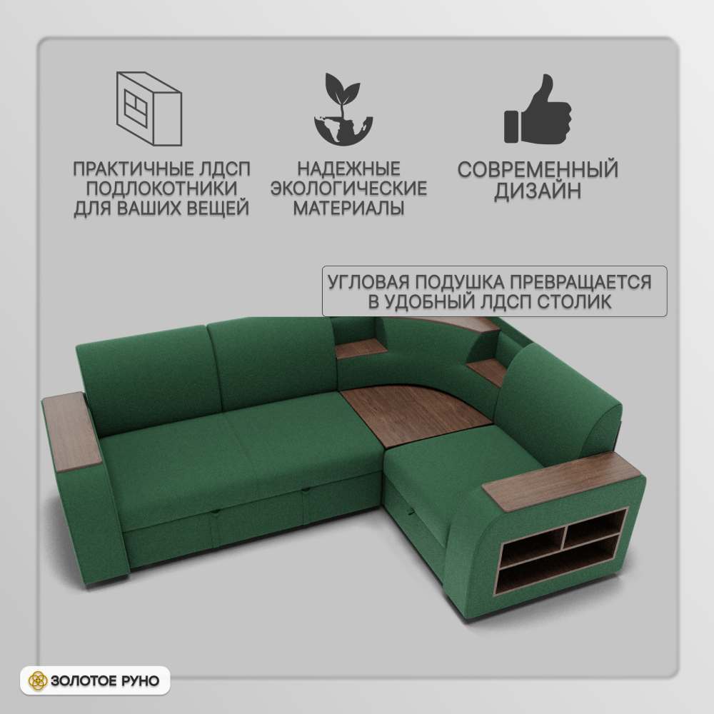 Отзывы о Столплит Угловой диван Фараон ППУ, велюр Зеленый