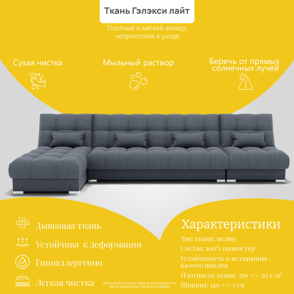 Отзывы о Столплит Угловой диван Фиеста-3 НПБ, велюр Серо-голубой