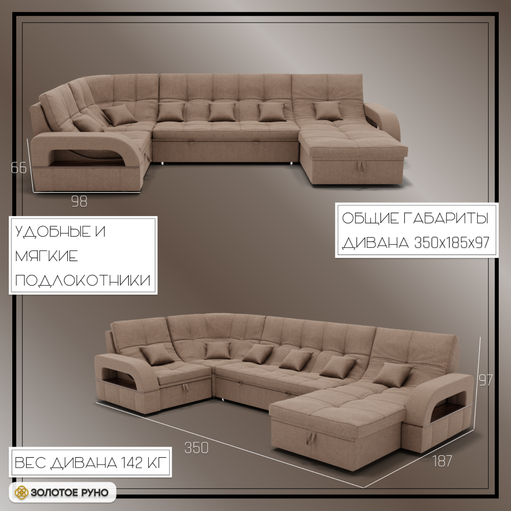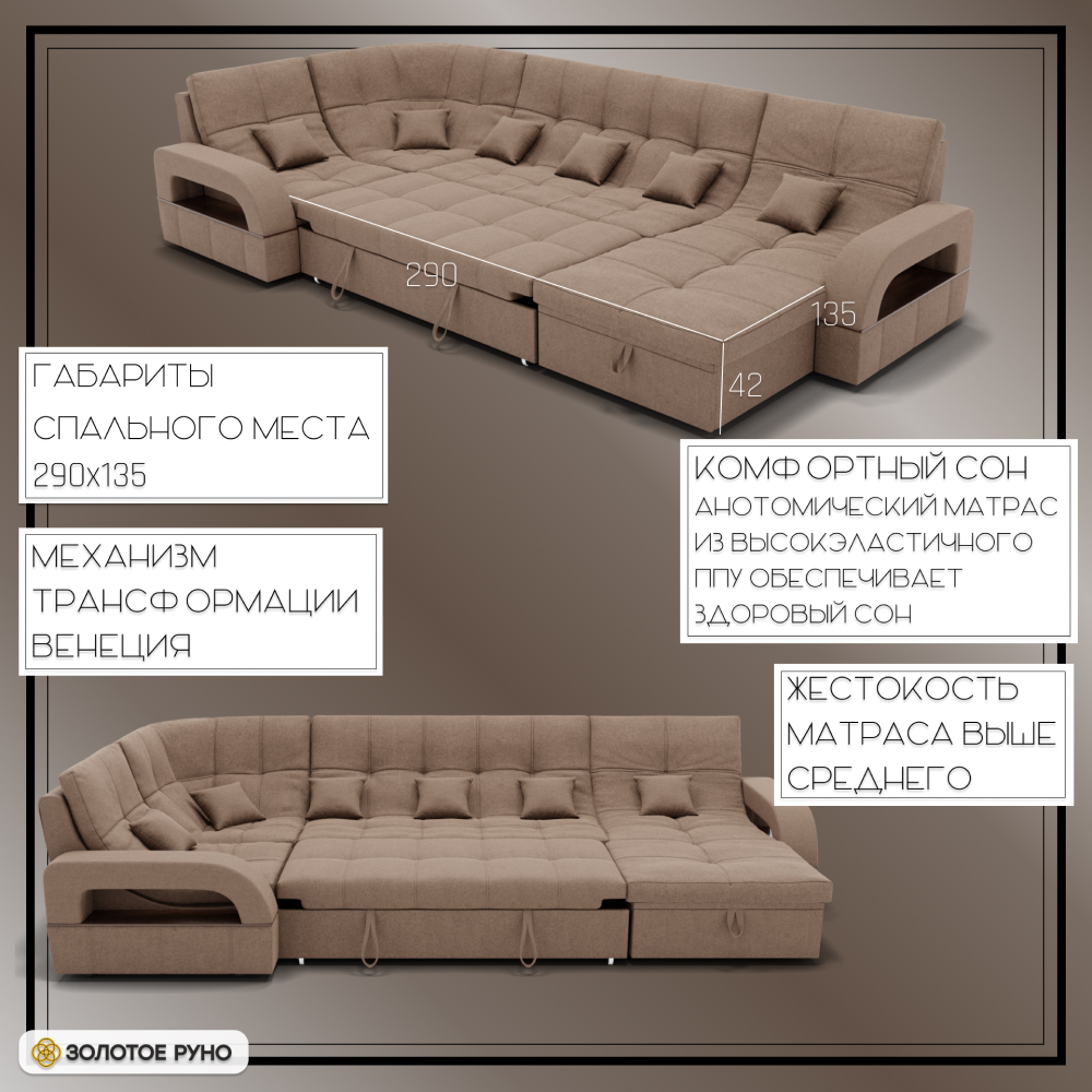 Отзывы о Столплит П-образный диван Майами-4 ППУ, велюр бежевый/коричневый