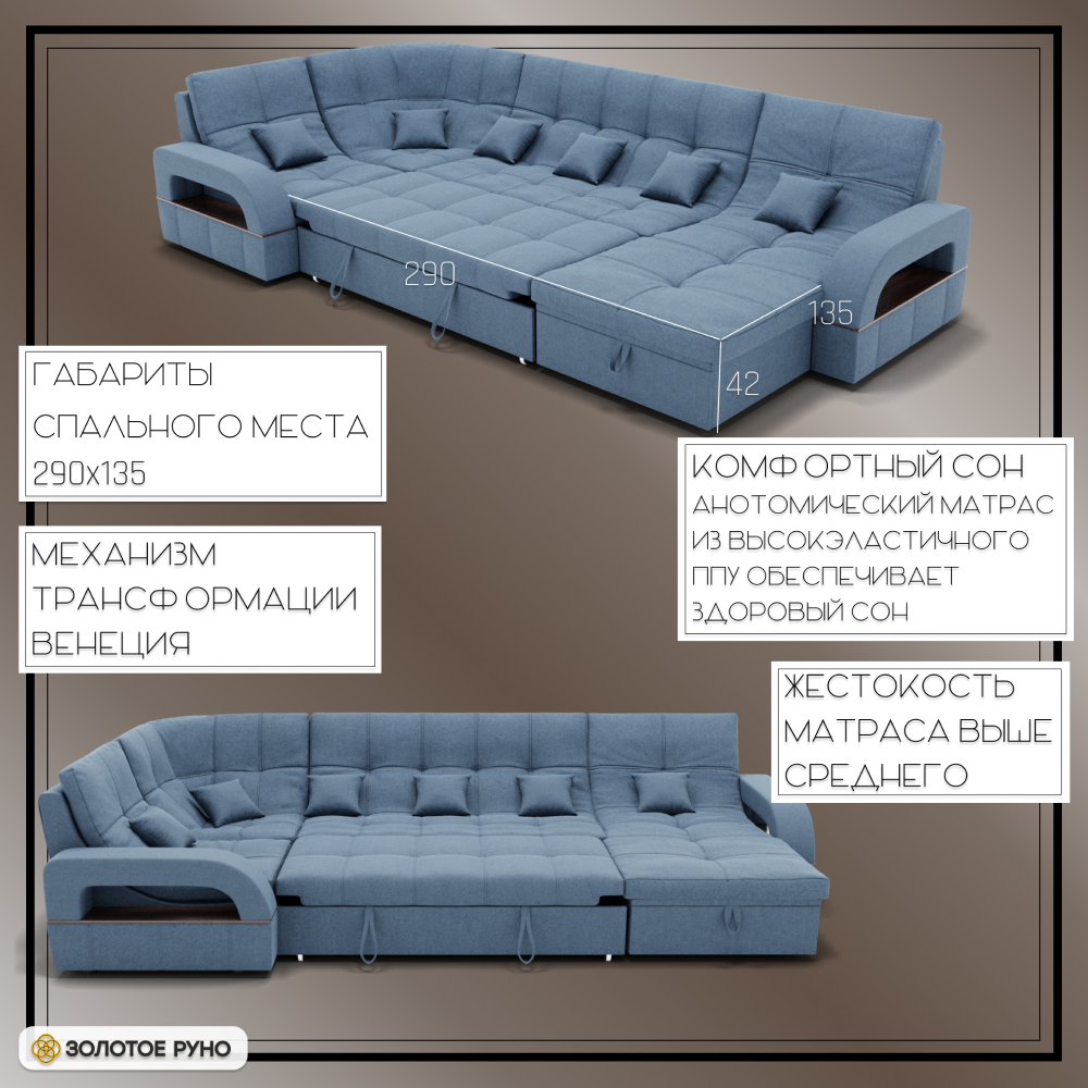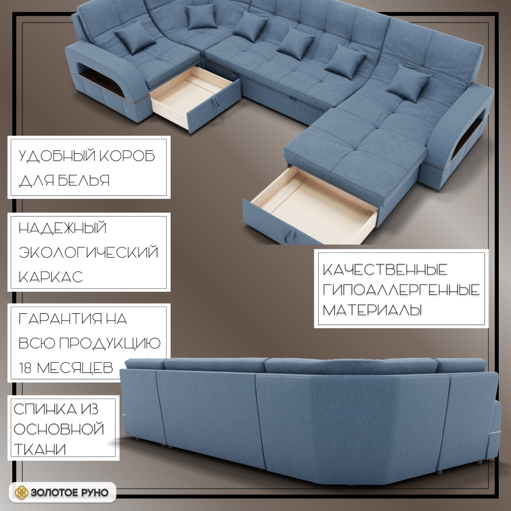 Отзывы о Столплит П-образный диван Майами-4 ППУ, велюр Голубой