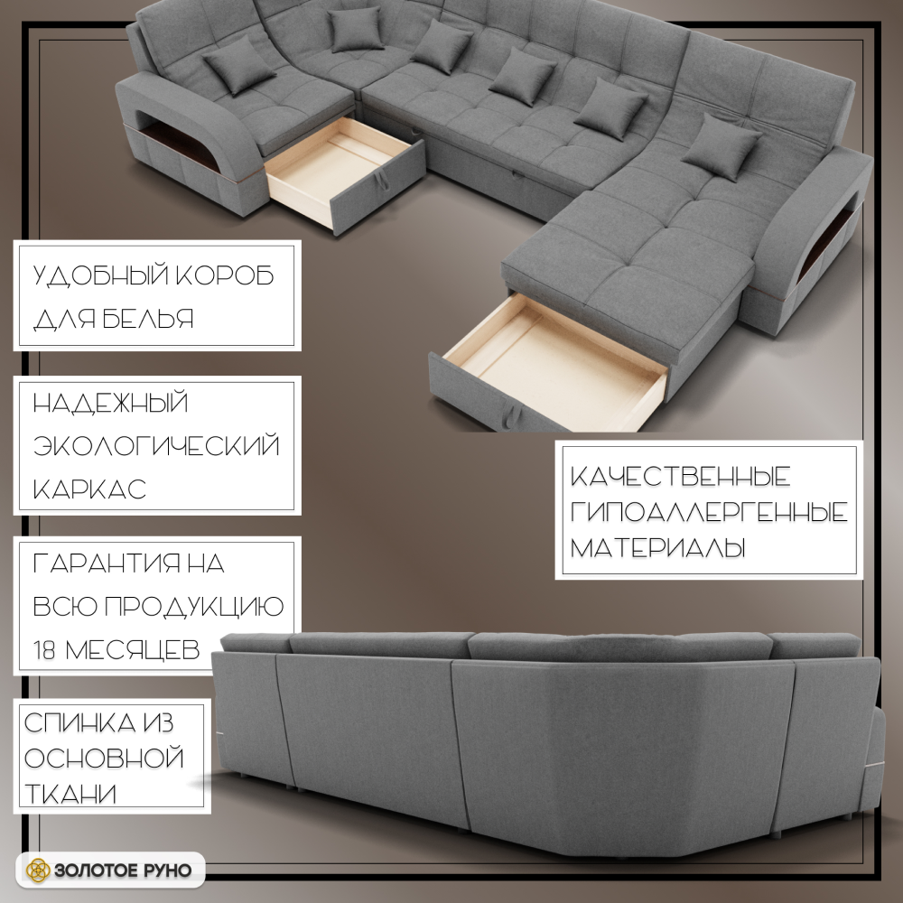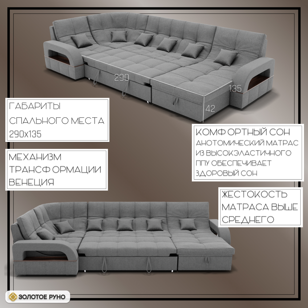 Отзывы о Столплит П-образный диван Майами-4 ППУ, велюр Серый