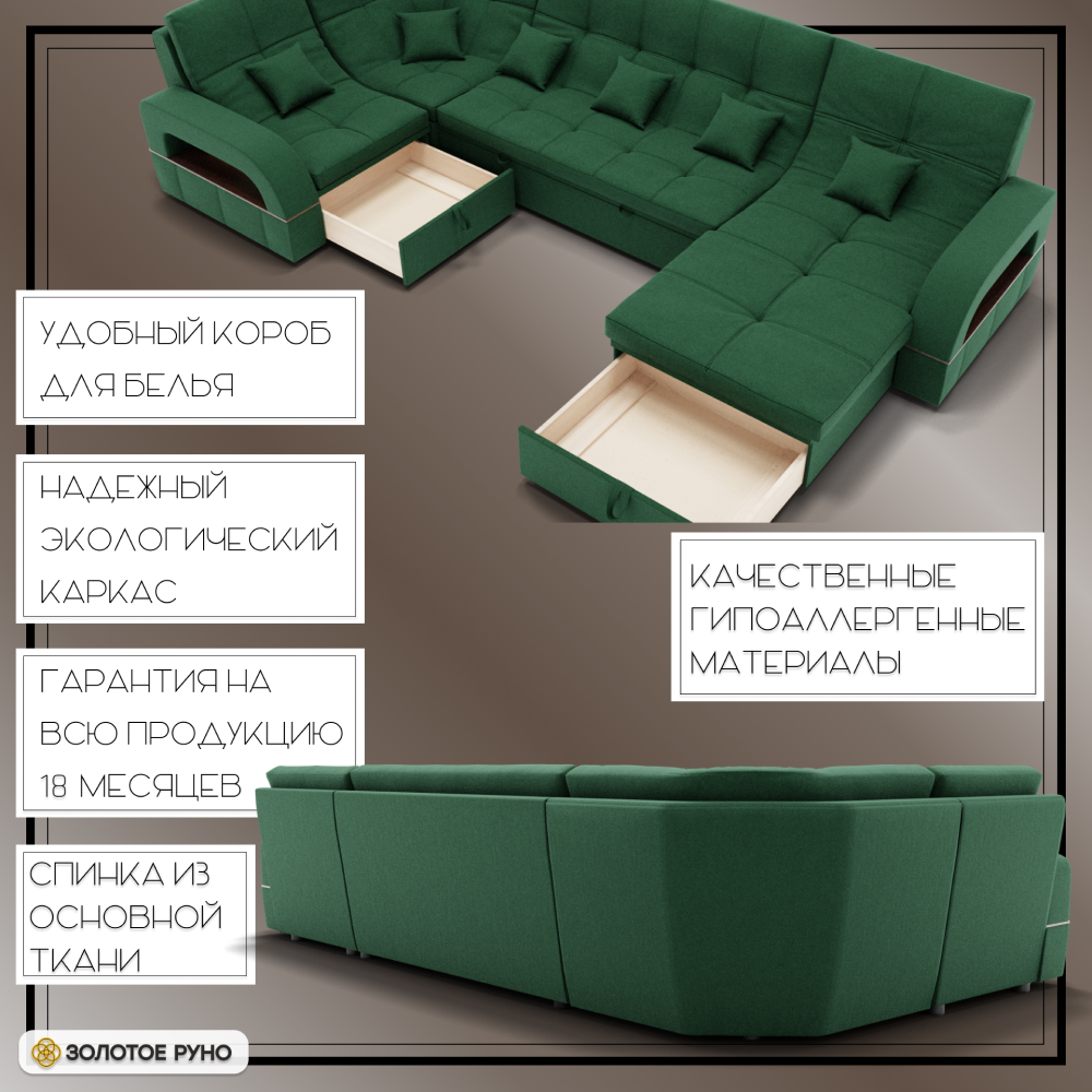 Отзывы о Столплит П-образный диван Майами-4 ППУ, велюр Зеленый