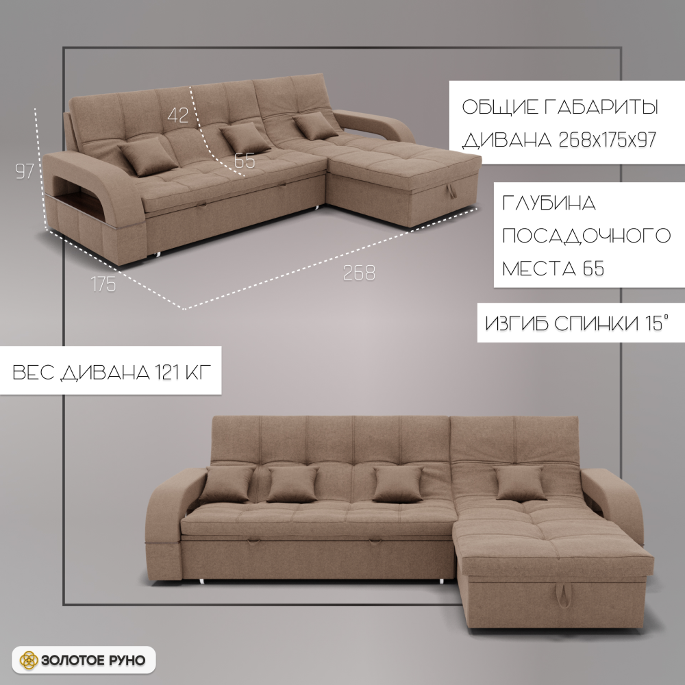 Отзывы о Столплит Угловой диван Майами-2 ППУ, велюр бежевый/коричневый