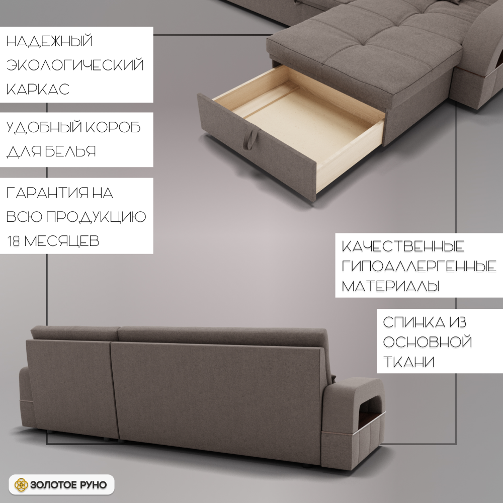Благородная фактура обивки и современный дизайн отлично дополнят ваш интерьер.