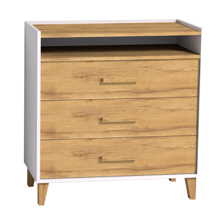 Низкий комод Айрис будет гармонично смотреться в просторной спальне в скандинавском стиле. В трех ящиках на направляющих плавного и бесшумного выдвижения поместятся постельные принадлежности, белье и одежда в сложенном виде. Каждый ящик выдерживает нагрузку до 10 кг.Трапециевидные ручки в том же декоре, что и фасады, изготовлены из массива дерева и удобны для ежедневного использования. Тонкие опоры оптимальной высоты позволят роботу-пылесосу беспрепятственно проезжать под комодом.