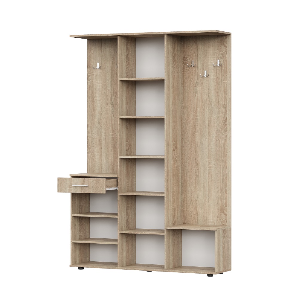 Благодаря ширине всего в 135 см гарнитур будет удачно смотреться даже в компактной входной зоне, не загромождая пространство.