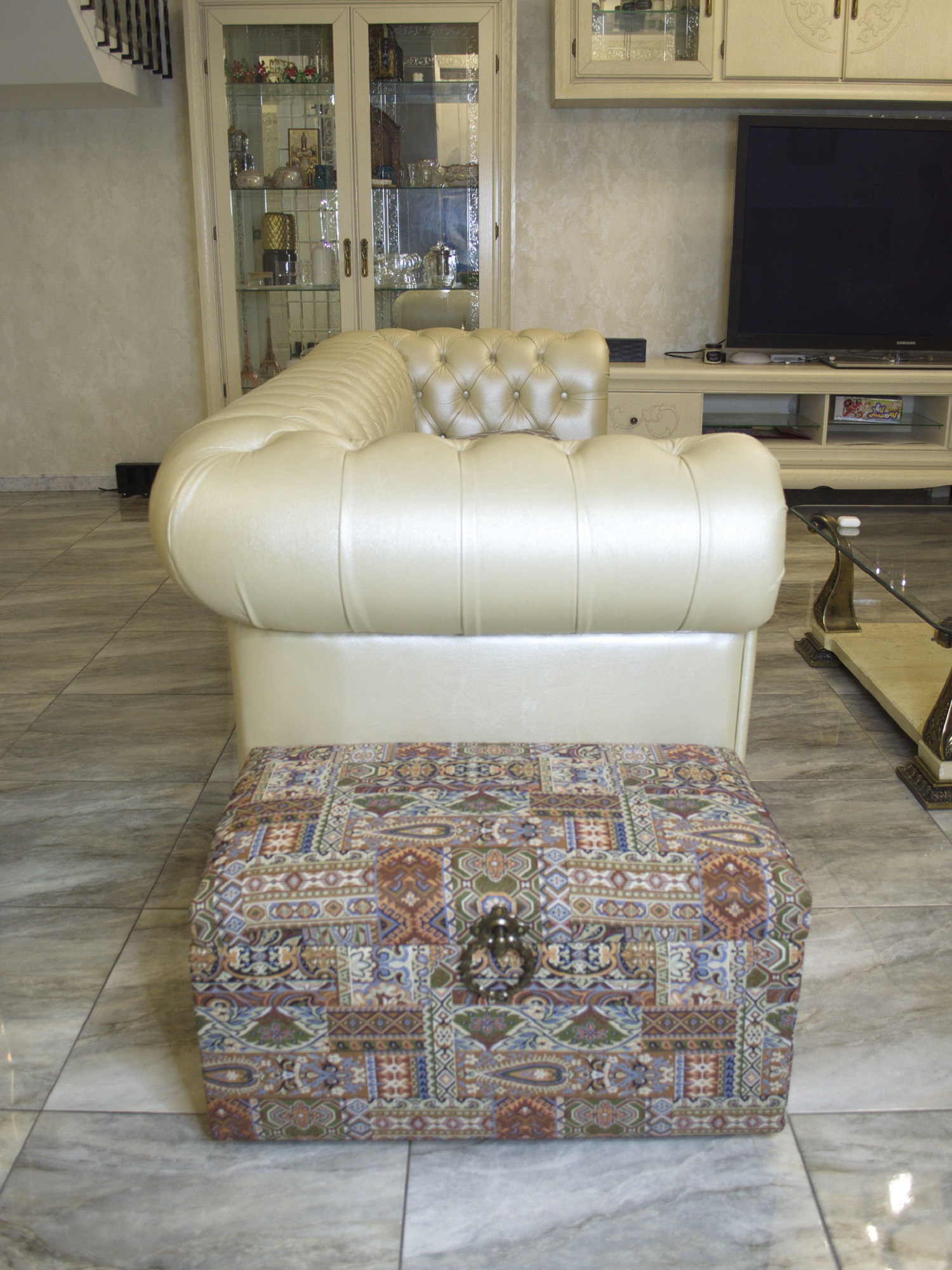 Банкетка "Восточный ковер" с ящиком для хранения в восточном стиле сделан из гобелена. Изысканный сундук удобен в качестве банкетки или пуфика - имеет мягкое сиденье и выдерживает вес сидящего человека до 150 кг. Внутри сундука - огромное пространство, где можно хранить все: от детских игрушек до постельного белья, одежды, обуви. Пластиковые ножки, на которых стоит сундук, не царапают пол. Но и переносить его тоже достаточно легко - вес сундука всего около 7 кг. Пуфик в прихожую, коридор, в спальню, в гостиную, в детскую, в кухню, в зал прекрасно впишется в любой интерьер офиса, дома или дачи. Пуф мягкий идеальный подарок мужчине или женщине на свадьбу, годовщину или юбилей. Подарок любимой, маме, жене, подруге. Сундук подойдет к любому интерьеру дома, дачи,и смотрится дорого и презентабельно. Элегантный пуфик банкетка будет служить местом для сидения и дополнительным местом для хранения. Пуфики удобны в качестве тумбы, прикроватного туалетного столика, полки, обувницы, стула, коробки для хранения. В ящик банкетки можно сложить обувь, книги, игрушки , постельное белье. Пуф с крышкой , банкетки разных цветов , размеров и фактур : большие, высокие, круглые, велюр, из рогожки, на ножках и без, из экокожи, ткани, с каретной стяжкой представлены в нашем магазине. Банкетку удобно использовать для сидения и в качестве подставки для ног или лежака для животных. Прочный каркас, качественные материалы, эксклюзивный дизайн, стильная обивка не оставят равнодушными взрослых и детей. Наполнитель для пуфа упругий поролон. Такой пуфик-банкетка альтернатива круглому пуфу, бескаркасному пуфу, отличная замена пуфа мешка.