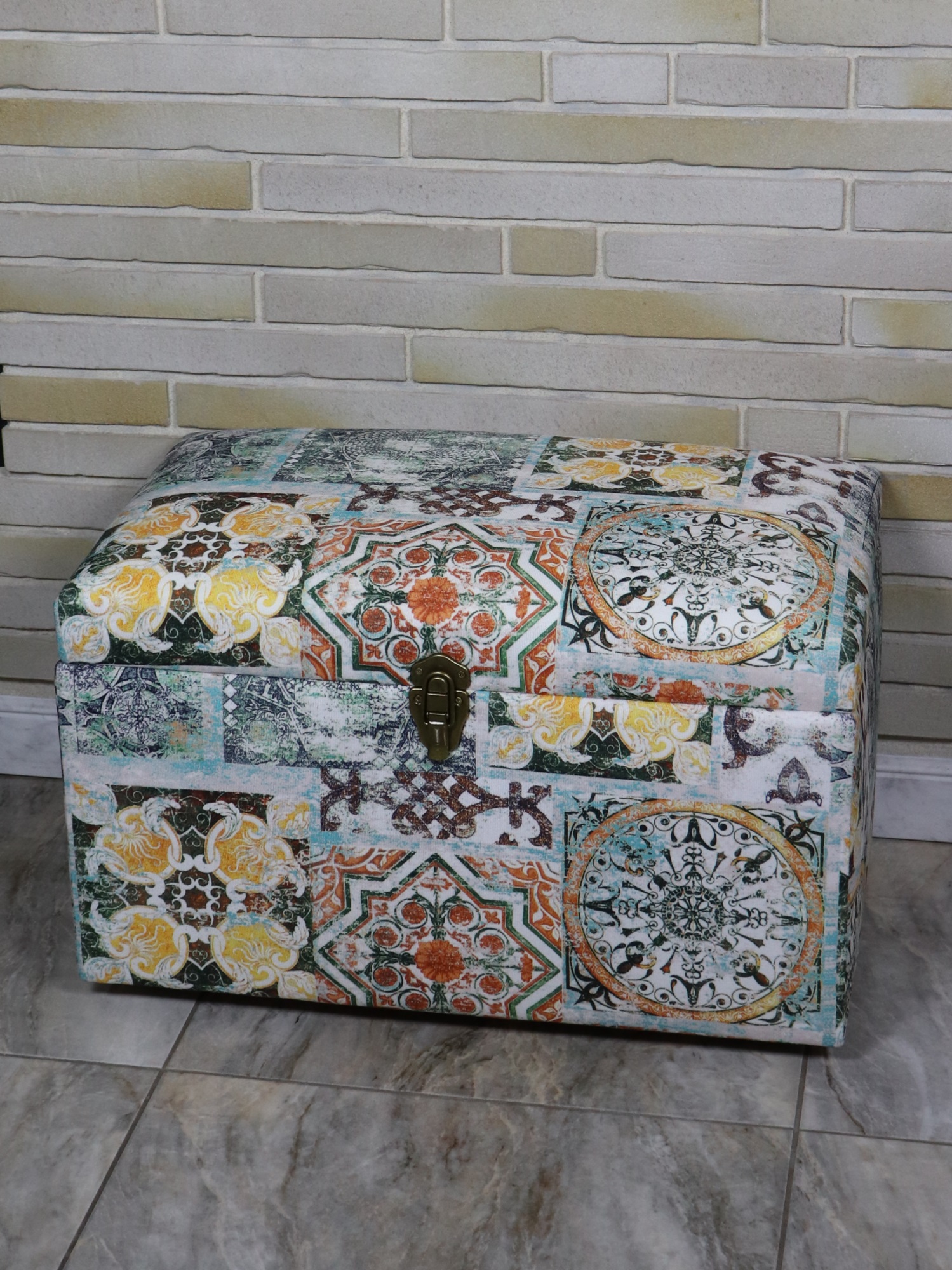Банкетка ""Восточный "" с ящиком для хранения в восточном стиле сделан из принтованного велюра в мексиканской стилистике.