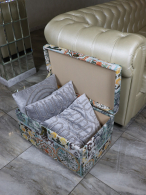 Пластиковые ножки, на которых стоит сундук, не царапают пол. Но и переносить его тоже достаточно легко - вес сундука всего около 8 кг. Пуфик в прихожую, коридор, в спальню, в гостинную, в детскую, в кухню, в зал прекрасно впишется в любой интерьер офиса, дома или дачи.