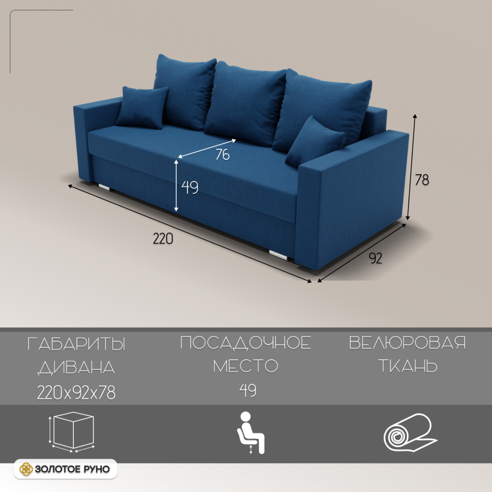 Отзывы о Столплит Прямой диван Олимп-1 ПБ, велюр Синий