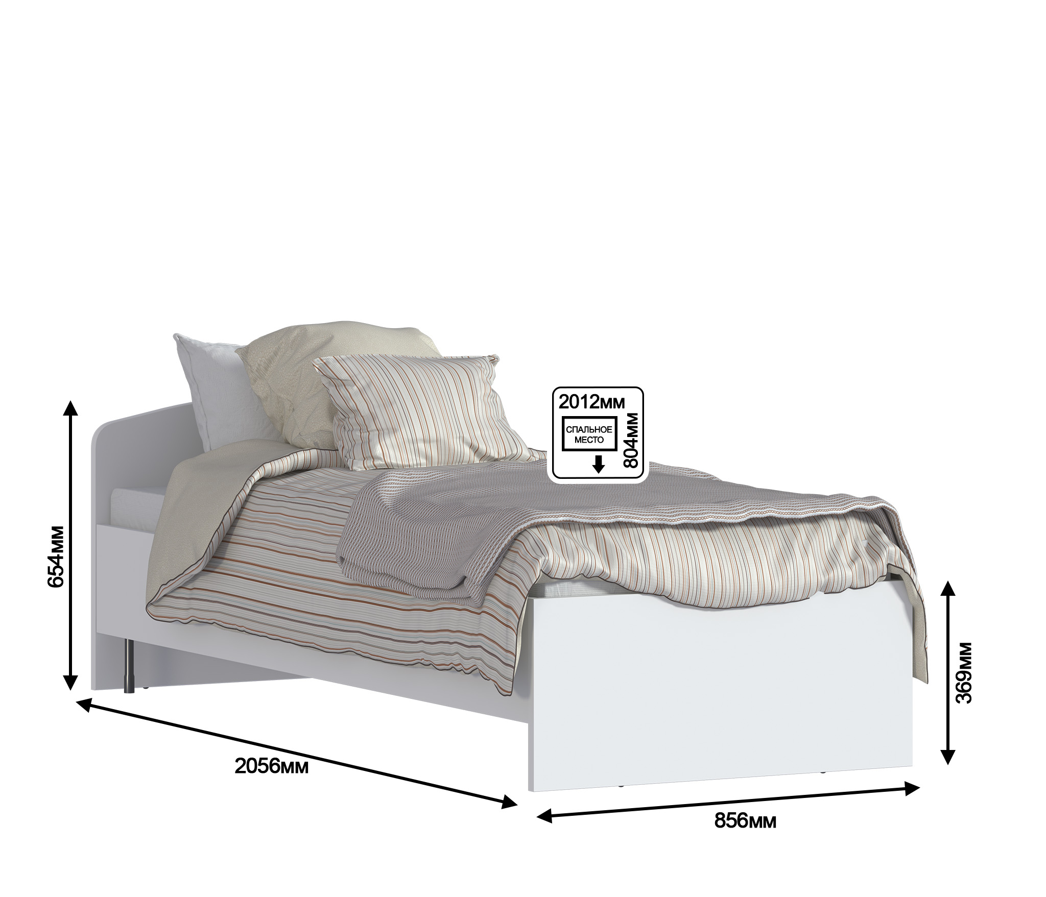 Размеры кровати (ШхВхГ) 206х90х87 см