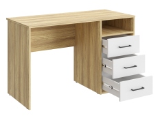 Письменный стол Оскар ОС-20 идеально подойдет для создания рабочего места в небольшом помещении. Благодаря своей универсальности стол с ящиками и нишей может использоваться как компьютерный, офисный, письменный или стол для ноутбука. С его помощью вы сможете организовать порядок на своем рабочем месте. Стол гармонично впишется в любой стиль интерьера. Современный и простой дизайн делает его идеальным для использования дома и в офисе. Свес крышки в 30 мм обеспечит прилегание к стене с любым плинтусом.