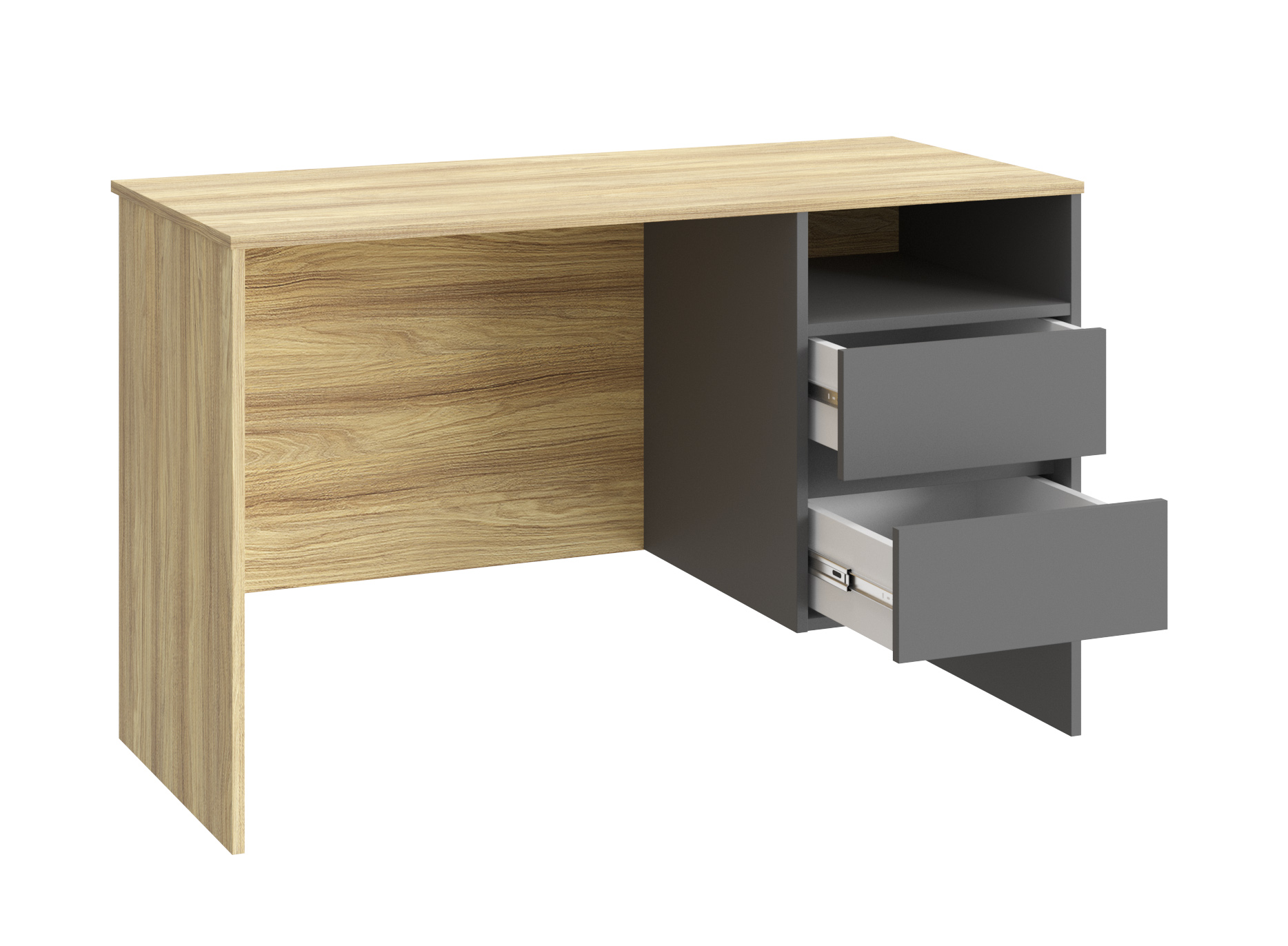 Письменный стол Оскар ОС-23 идеально подойдет для создания рабочего места в небольшом помещении. Благодаря своей универсальности стол с ящиками и нишей может использоваться как компьютерный, офисный, письменный или стол для ноутбука. С его помощью вы сможете организовать порядок на своем рабочем месте. Стол гармонично впишется в любой стиль интерьера. Современный и простой дизайн делает его идеальным для использования дома и в офисе. Свес крышки в 30 мм обеспечит прилегание к стене с любым плинтусом. Фурнитура: телескопические направляющие полного выдвижения без доводчиков, ручки пластик. Регулируемые опоры позволяют компенсировать возможные неровности пола.