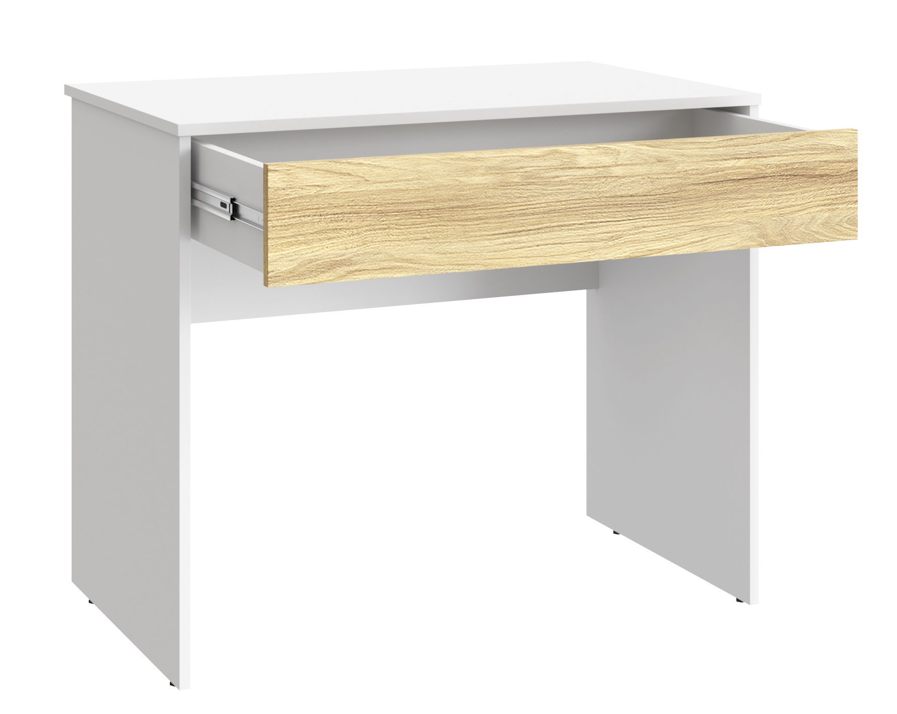 Письменный стол Оскар ОС-25 идеально подойдет для создания рабочего места в небольшом помещении. Благодаря своей универсальности стол с ящиком может использоваться как компьютерный, офисный, письменный, маникюрный, стол-парту для школьника или стол для ноутбука. С его помощью вы сможете организовать порядок на своем рабочем месте. Стол гармонично впишется в любой стиль интерьера. Современный и простой дизайн без ручек делает его идеальным для использования дома и в офисе. Свес крышки в 30 мм обеспечит прилегание к стене с любым плинтусом. Фурнитура: телескопические направляющие полного выдвижения без доводчиков. Регулируемые опоры позволяют компенсировать возможные неровности пола.