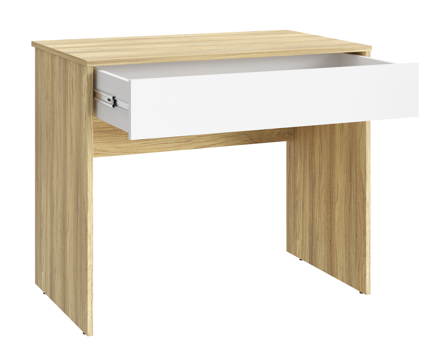 Письменный стол Оскар ОС-25 идеально подойдет для создания рабочего места в небольшом помещении. Благодаря своей универсальности стол с ящиком может использоваться как компьютерный, офисный, письменный, маникюрный, стол-парту для школьника или стол для ноутбука. С его помощью вы сможете организовать порядок на своем рабочем месте. Стол гармонично впишется в любой стиль интерьера. Современный и простой дизайн без ручек делает его идеальным для использования дома и в офисе. Свес крышки в 30 мм обеспечит прилегание к стене с любым плинтусом. Фурнитура: телескопические направляющие полного выдвижения без доводчиков. Регулируемые опоры позволяют компенсировать возможные неровности пола.
