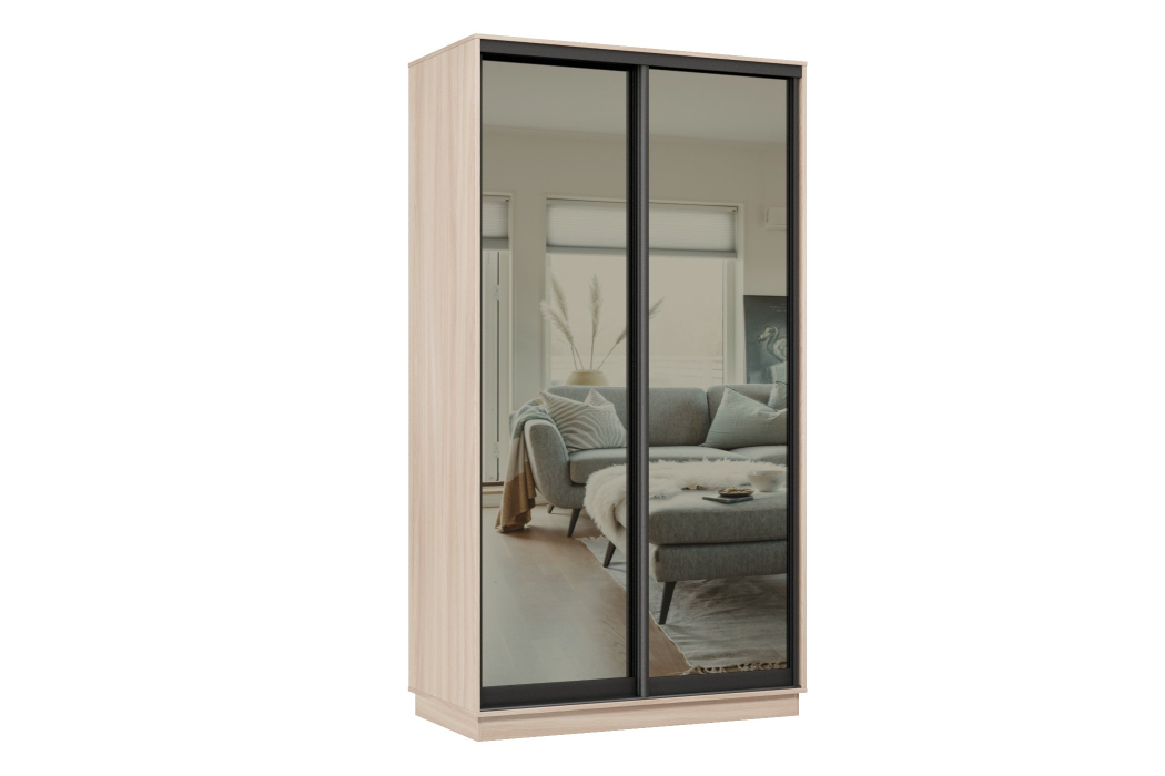Отзывы о Столплит Шкаф-купе Премьер 04 (01ЗГ;01ЗГ) фасады зеркало графит/двухдверный/Профиль чёрный муар Ясень шимо светлый